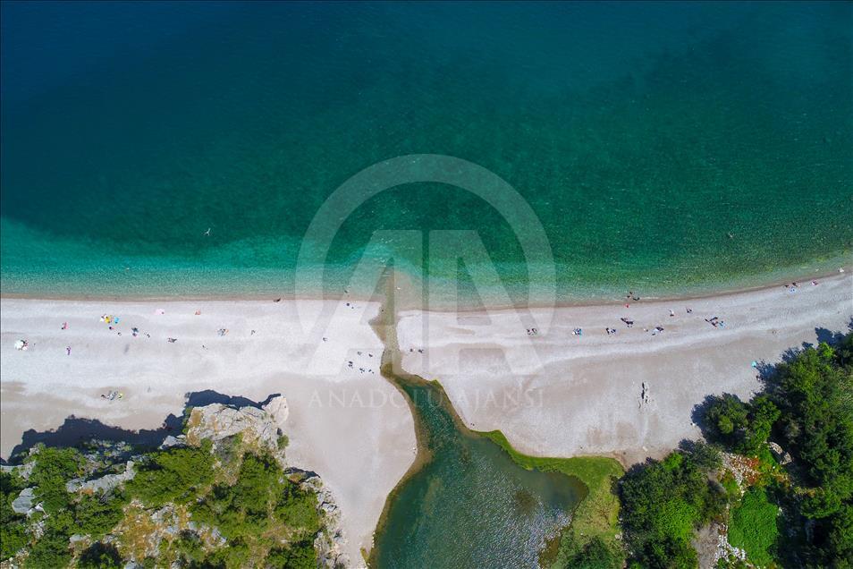 ANTALYA, TURKEY - APRIL 18 : An aerial view of beach of Olympos Ruins and its surroundings are seen on the route of Lycian Way in Kumluca district of Antalya, Turkey on April 18, 2018. Lycian way is approximately 540 km long and stretches from Ölüdeniz, near Fethiye, to Geyikbayırı, about 20 kilometers from Antalya. It takes its name from the ancient civilisation, which once ruled the area. ( Mustafa Çiftçi - Anadolu Agency )Mustafa Çiftçi