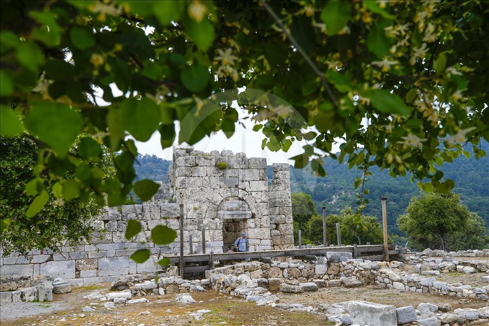 MUGLA, TURKEY - APRIL 11 : A view of Kaunos Ancient City is seen in Ortaca district of Mugla, Turkey on April 11, 2018. Karia walking route is an 820-kilometer-long way between Mugla and Aydin provinces, gets its name from ancient Karia civilization that lived in the area. Road has an architecture of its own, bays, olive and almond trees, hills and ancient cities. ( Mustafa Çiftçi - Anadolu Agency )Mustafa Çiftçi