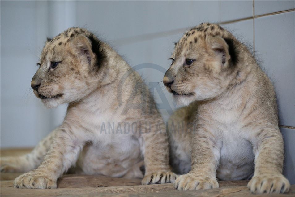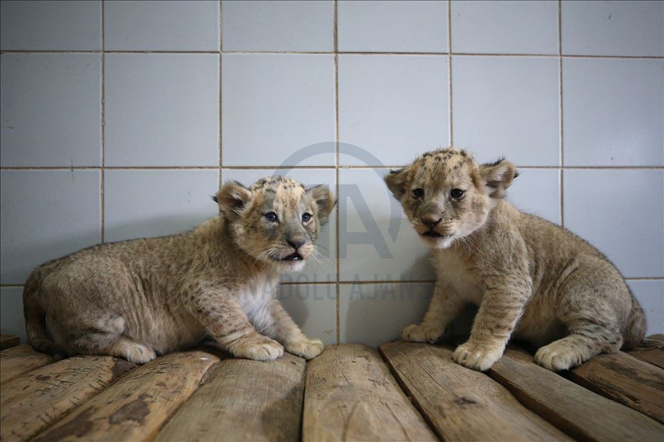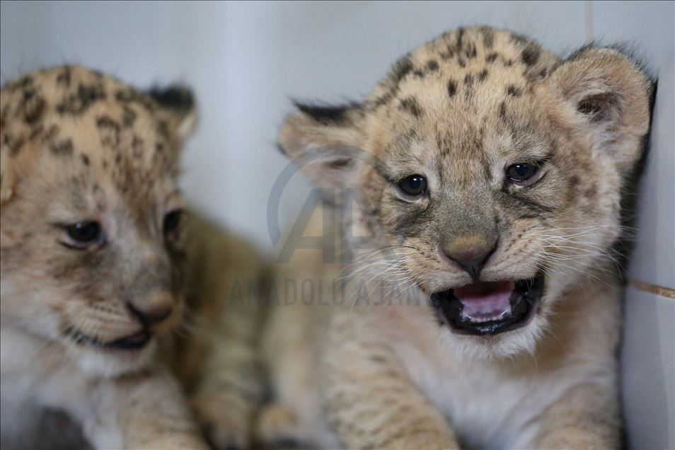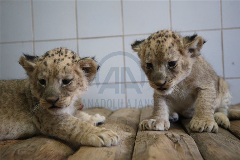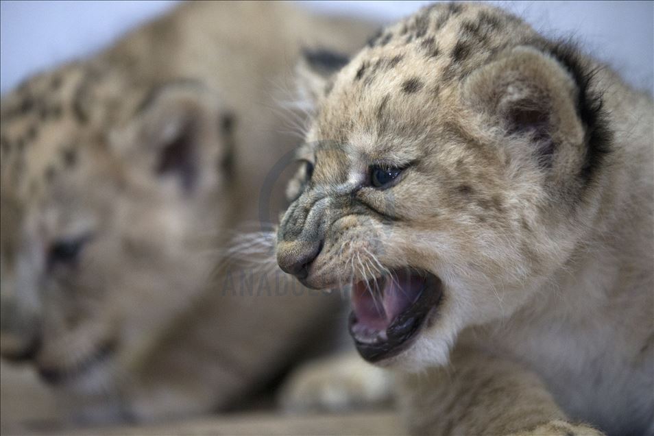 Lion cubs are seen 3 weeks after their birth at the Zoo of the Kayseri Metropolitan Municipality in Kayseri, Turkey on January 13, 2020.