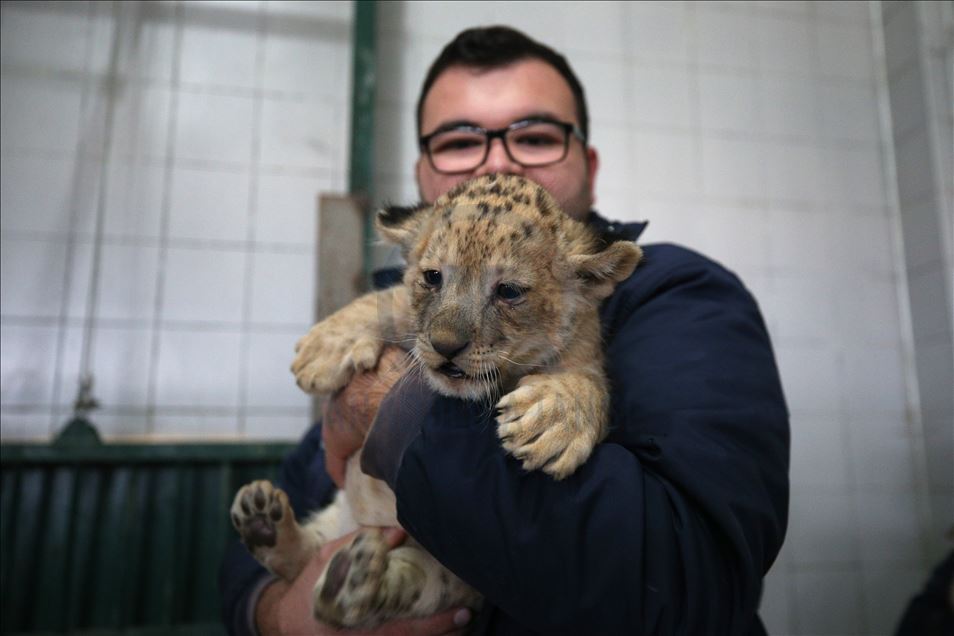 KAYSERI, TURKEY - JANUARY 13: A lion cub is seen 3 weeks after its birth at the Zoo of the Kayseri Metropolitan Municipality in Kayseri, Turkey on January 13, 2020.