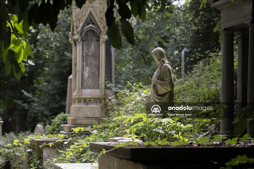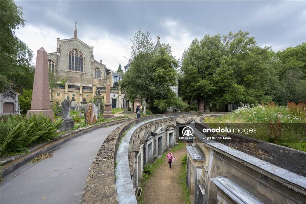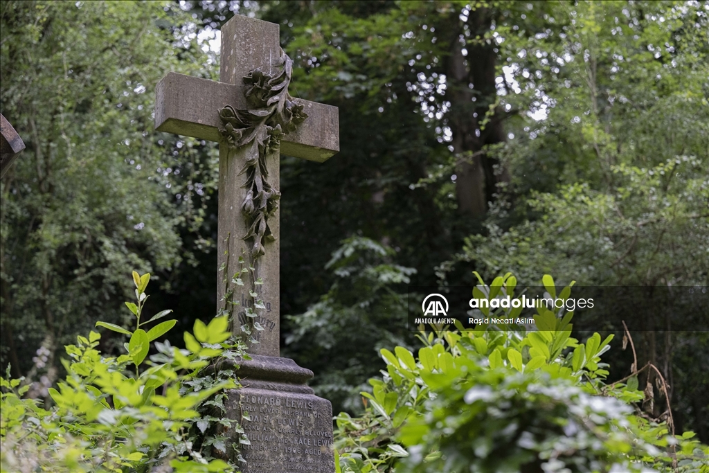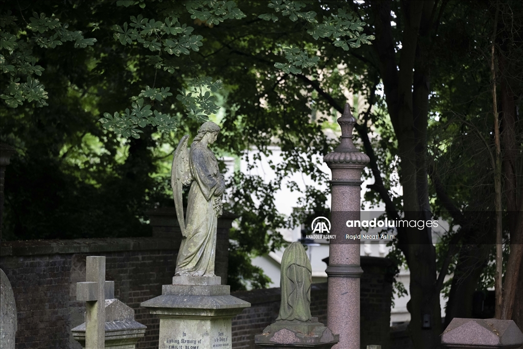 LONDON, UNITED KINGDOM - JULY 16: A view of the London Highgate Cemetery that was built in 1839, due to the inadequacy of church cemeteries in the Victorian Era in London, United Kingdom on July 16, 2023. There are graves of famous names like Karl Marx, George Eliot and Douglas Adams, as the cemetery also contains different Victorian mausoleums and tombstones. ( Raşid Necati Aslım - Anadolu Agency )Raşid Necati Aslım