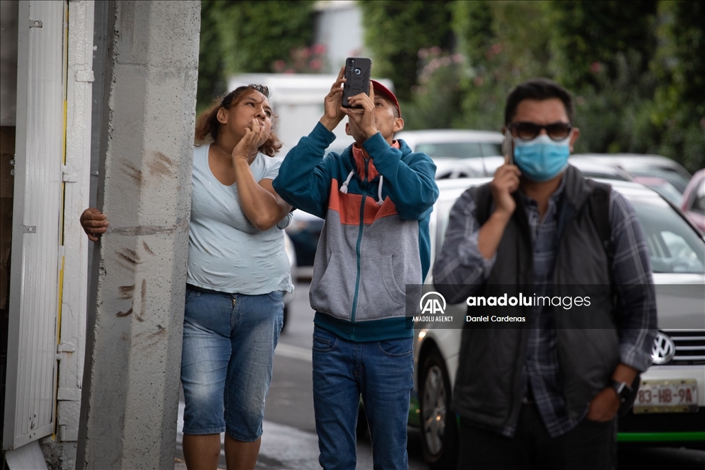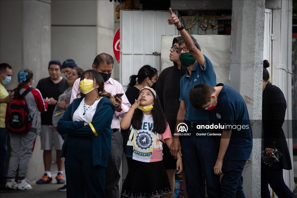 MEXICO CITY, MEXICO - SEPTEMBER 19: People observe a damaged building after a 7.6 magnitude earthquake in Mexico City, Mexico on September 19, 2022. According to the U.S. Geologic Survey, the quake was centered 37 kilometers (23 miles) near the boundary of Colima and Michoacan states. ( Daniel Cardenas - Anadolu Agency )Daniel Cardenas