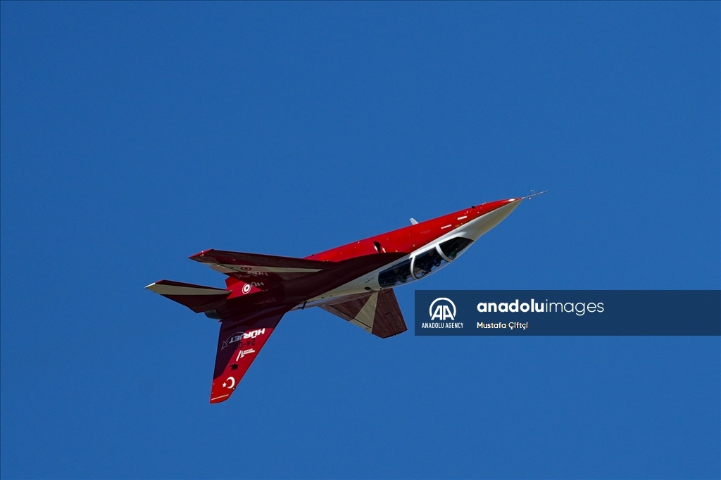 ADANA, TURKIYE - OCTOBER 3: HURJET performs on the second day of Turkiye's premier technology and aerospace event TEKNOFEST, held at Adana Airport in Adana, Turkiye on October 3, 2024. The four-day event will feature competitions, air shows, exhibitions and workshops. The event has been organized by the Turkish Technology Team (T3) Foundation and the Turkish Industry and Technology Ministry jointly since 2018, in cooperation with dozens of ministries, public institutions, private firms, and universities. ( Mustafa Çiftçi - Anadolu Agency )Mustafa Çiftçi