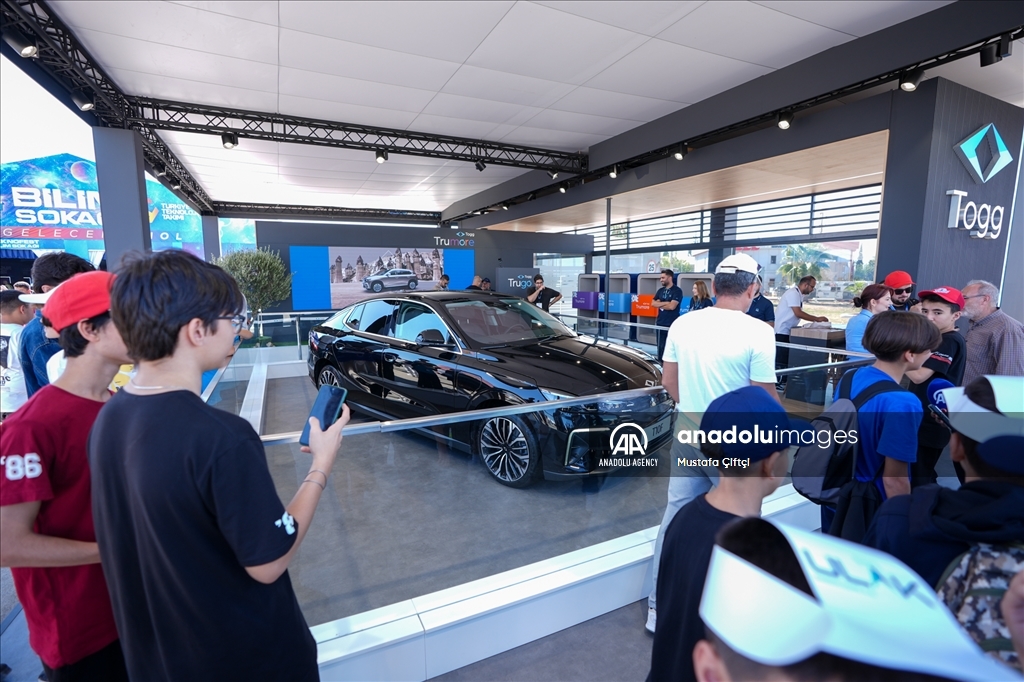 ADANA, TURKIYE - OCTOBER 3: Turkiye's electric car brand Togg's new sedan model T10F fastback is on display on the second day of Turkiye's premier technology and aerospace event TEKNOFEST, held at Adana Airport in Adana, Turkiye on October 3, 2024. The four-day event will feature competitions, air shows, exhibitions and workshops. The event has been organized by the Turkish Technology Team (T3) Foundation and the Turkish Industry and Technology Ministry jointly since 2018, in cooperation with dozens of ministries, public institutions, private firms, and universities. ( Mustafa Çiftçi - Anadolu Agency )Mustafa Çiftçi