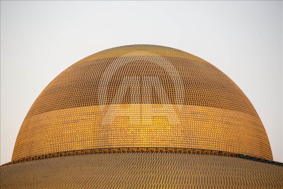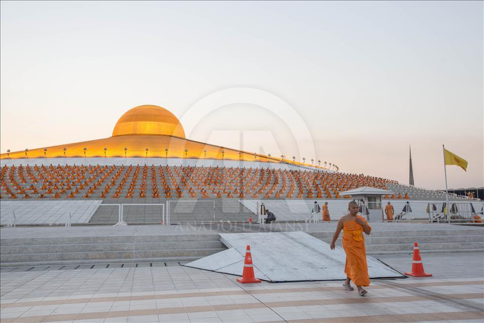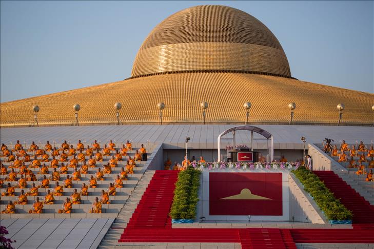 BANGKOK, THAILAND - FEBRUARY 19: A general view of the Dhammakaya Temple during the yearly ceremony in the north of Bangkok, Thailand on February 19, 2019. Thai people celebrate the buddhist festival of clockwise circumambulation and Makha Bucha lantern lighting ceremony at Dhammakaya Temple on 'Makha Bucha Day' during the third lunar moon, where around 1250 monks gathered to be ordained by the Buddha and hundreds thousand of devotees holding lanterns. ( Guillaume Payen - Anadolu Agency )Guillaume Payen