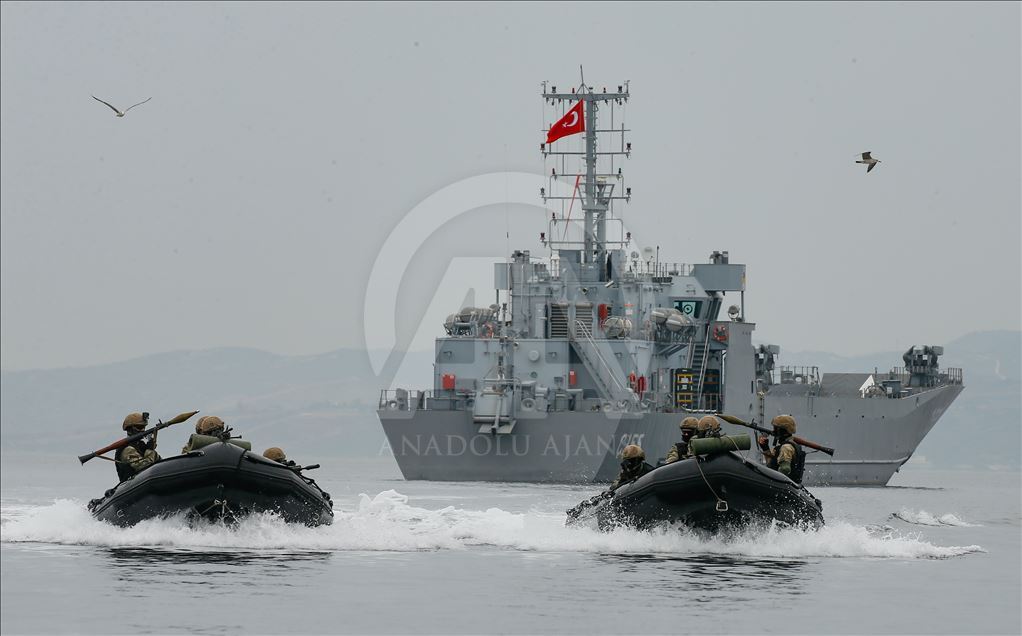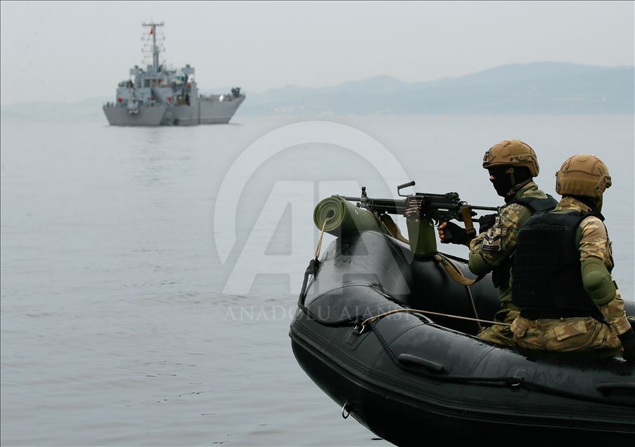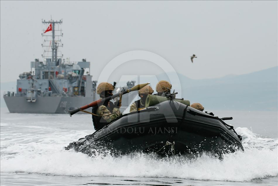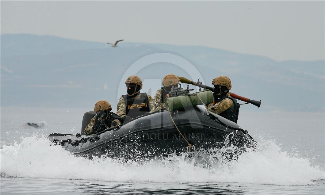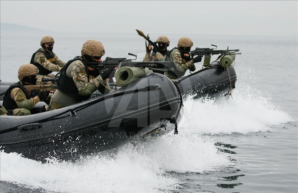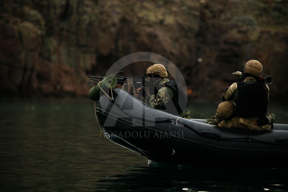 Members of Marine Amphibious Unit of Turkish Armed Forces attend a training at Amphibious Marine Brigade in Foca district of Izmir, Turkey on November 13, 2019.
