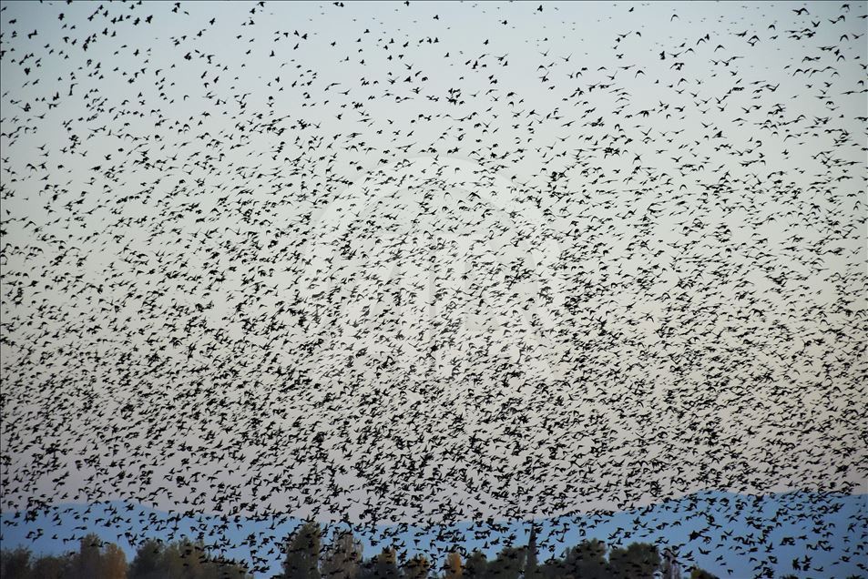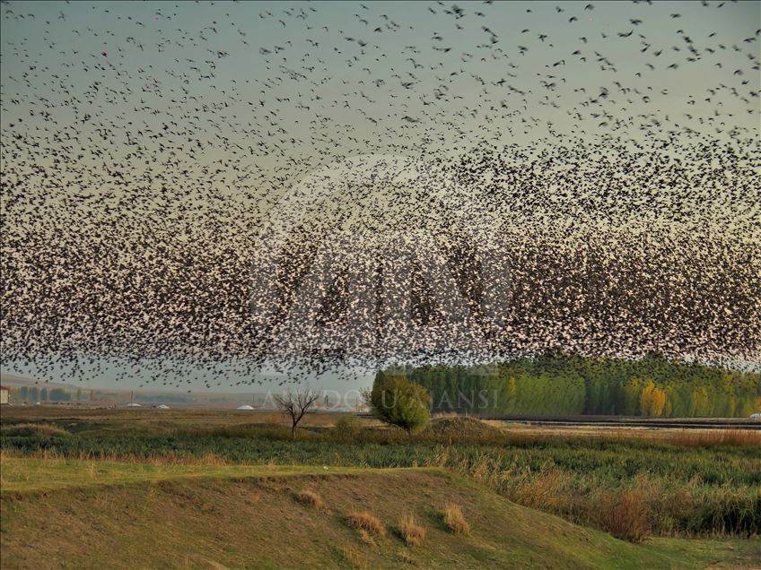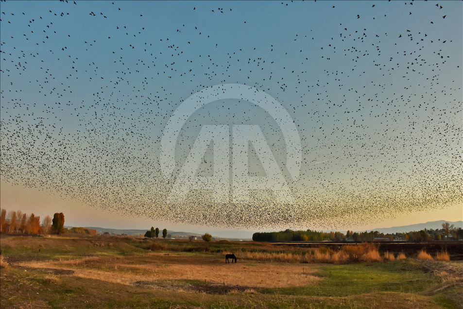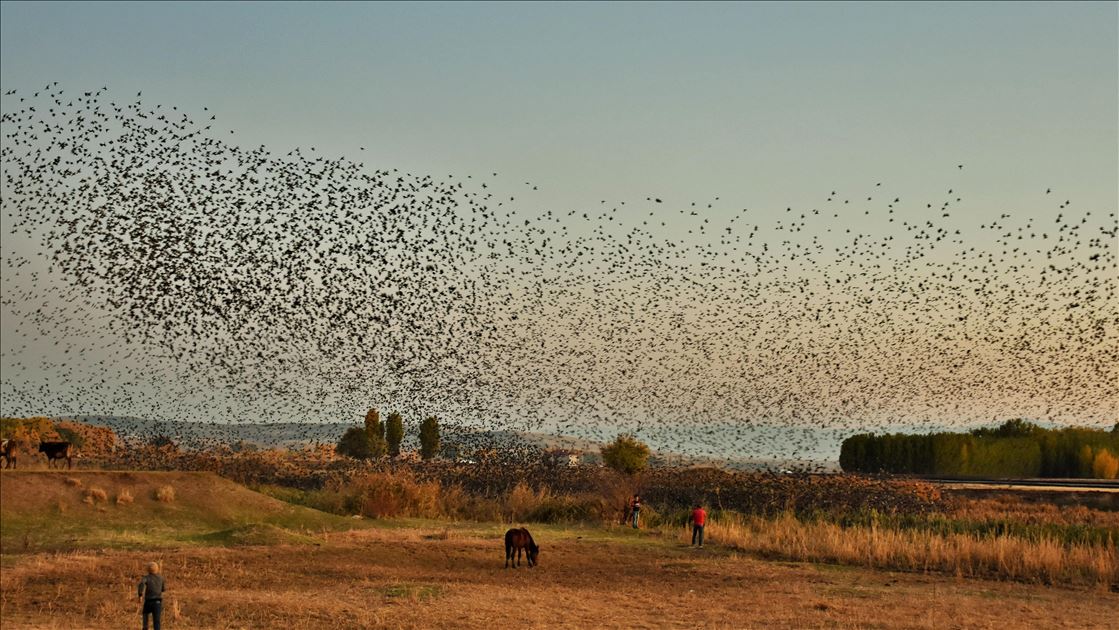 Migration process of starlings observed in eastern Turkey’s Mus province, on Nov. 17, 2019
