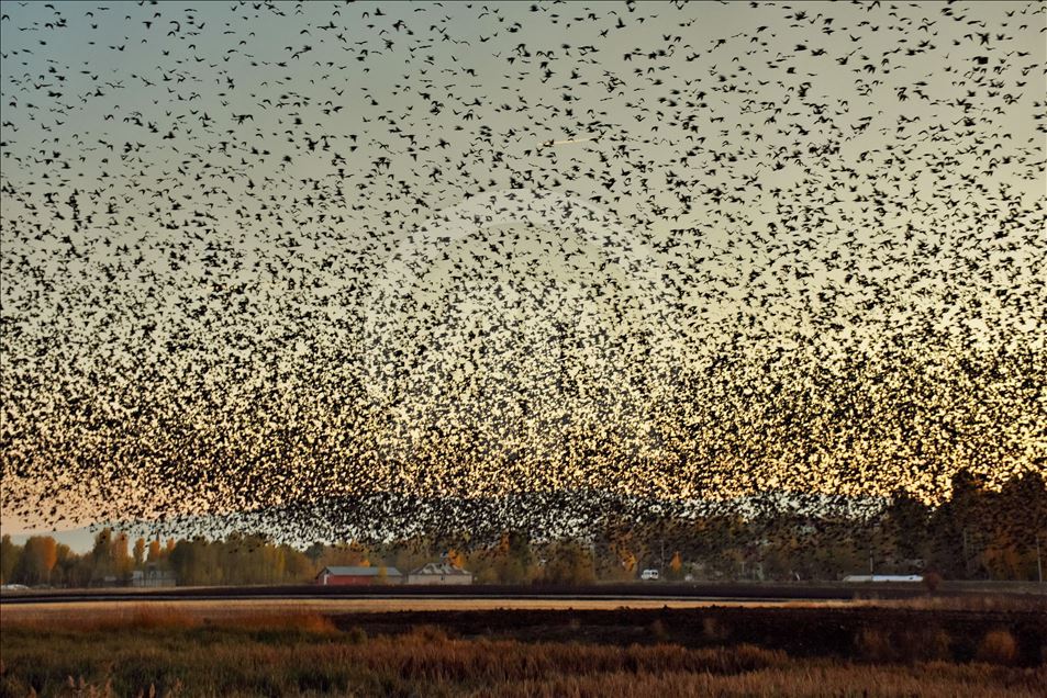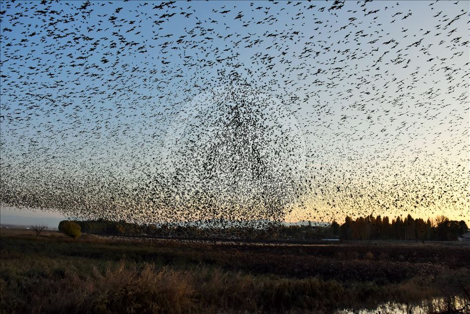 MUS, TURKEY - NOVEMBER 17: A view of starlings murmuration is seen during their migration process in Mus, Turkey on November 17, 2019. ( Yahya Sezgin - Anadolu Agency )Yahya Sezgin