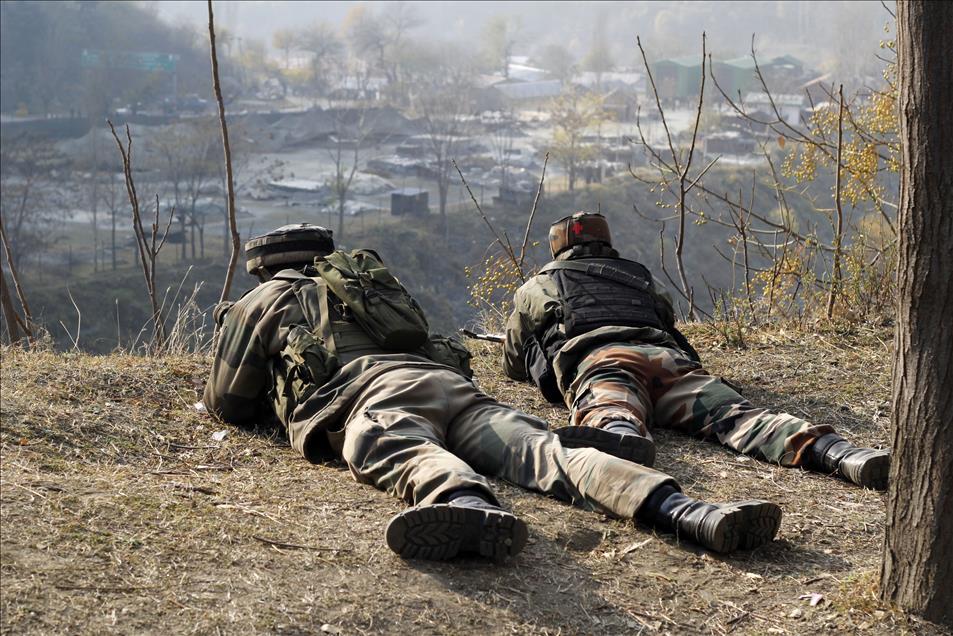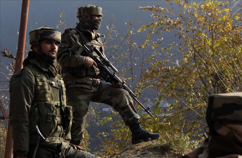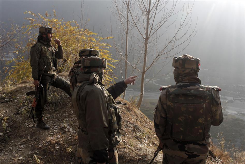 URI, KASHMIR, DECMEBER – 5: Indian army men stand on top of a mountain, during an encounter between suspected militants and Army soldiers on their base at Mohra, in Uri, 100 kms from capital Srinagar on December 5, 2014. Militants sneaked into an Indian army camp in Kashmir on Friday morning killing at least ten soldiers and police in their bunkers, the worst losses for security forces in more than a year. Photo Ahmer Khan/Anadolu AgencyAhmer Khan