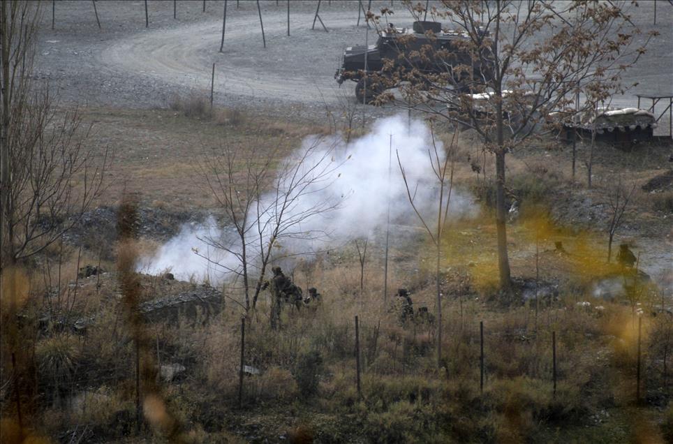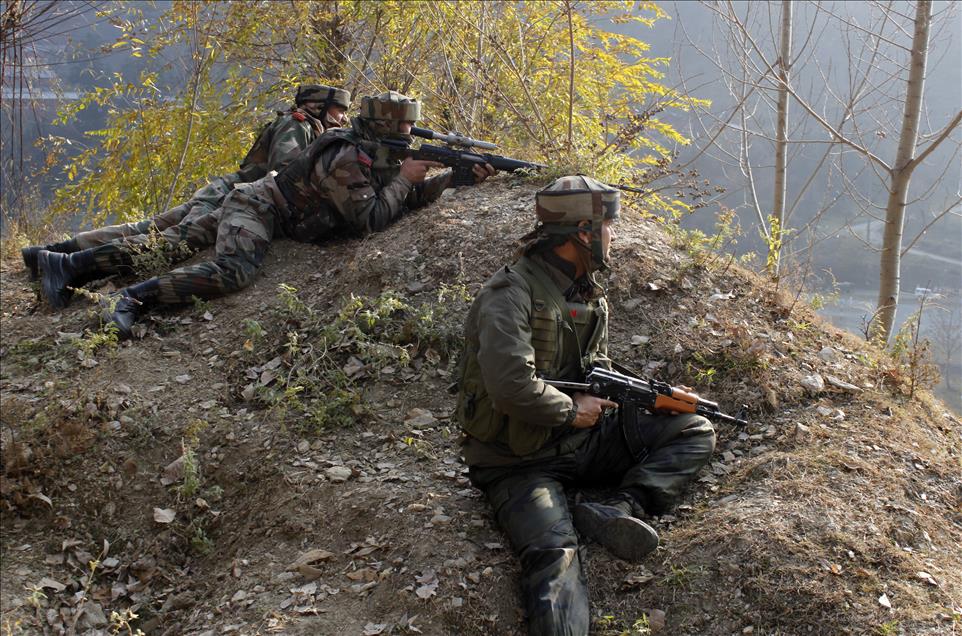 URI, KASHMIR, DECMEBER – 5: Indian army men take their positions on top of mountain, during an encounter between suspected militants and Army soldiers on their base at Mohra, in Uri, 100 kms from capital Srinagar on December 5, 2014. Militants sneaked into an Indian army camp in Kashmir on Friday morning killing at least ten soldiers and police in their bunkers, the worst losses for security forces in more than a year. Photo Ahmer Khan/Anadolu AgencyAhmer Khan