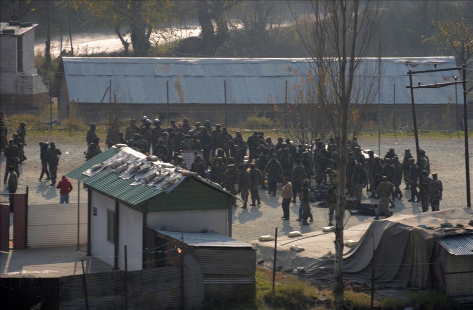 URI, KASHMIR, DECMEBER – 5: Indian army men gather around the dead bodies of suspected militants after an encounter between suspected militants and Army soldiers on their base at Mohra, in Uri, 100 kms from capital Srinagar on December 5, 2014. Militants sneaked into an Indian army camp in Kashmir on Friday morning killing at least ten soldiers and police in their bunkers, the worst losses for security forces in more than a year. Photo Ahmer Khan/Anadolu AgencyAhmer Khan