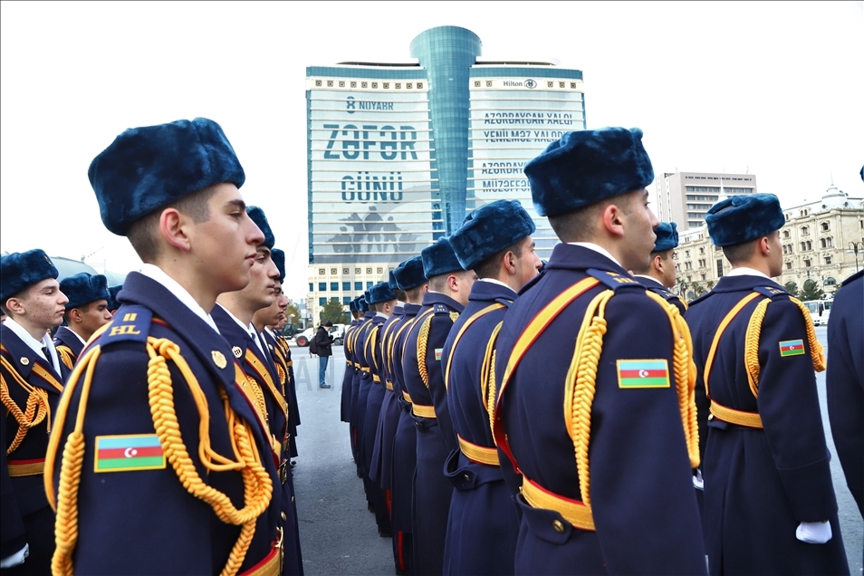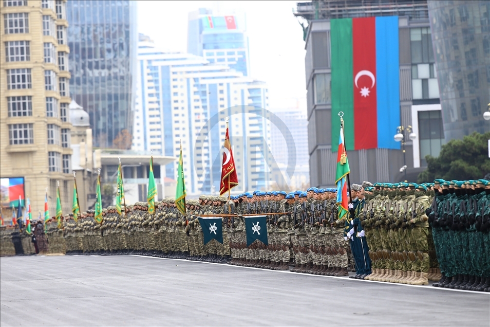 Turkish and Azerbaijani soldiers take part in the rehearsals in the streets of Baku ahead of the military parade, which will be held to mark the Azerbaijani Army's entrance to Nagorno-Karabakh.Resul Rehimov