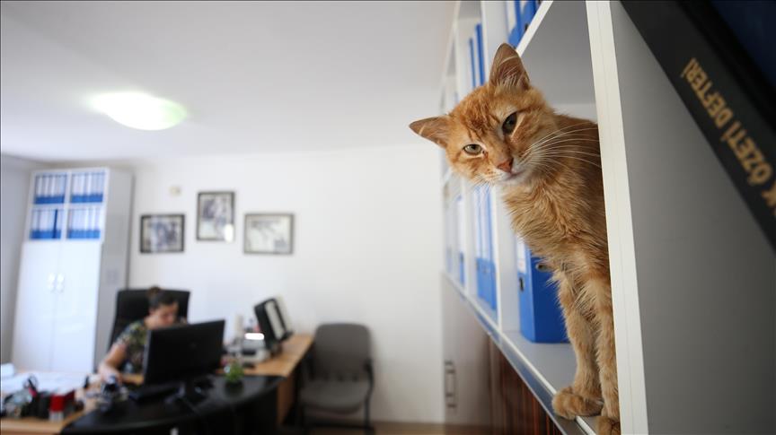 YALOVA, TURKEY - JUNE 27: An inside view of an office at Esenkoy Town Municipality as a cat stands in the shelf between files at Cinarcik district of Yalova province in Turkey on June 27, 2018. Municipal officials and directors feed the stray cats and host them sharing their offices, desks even their chairs and display their sensitivity. ( Ali Atmaca - Anadolu Agency )Ali Atmaca