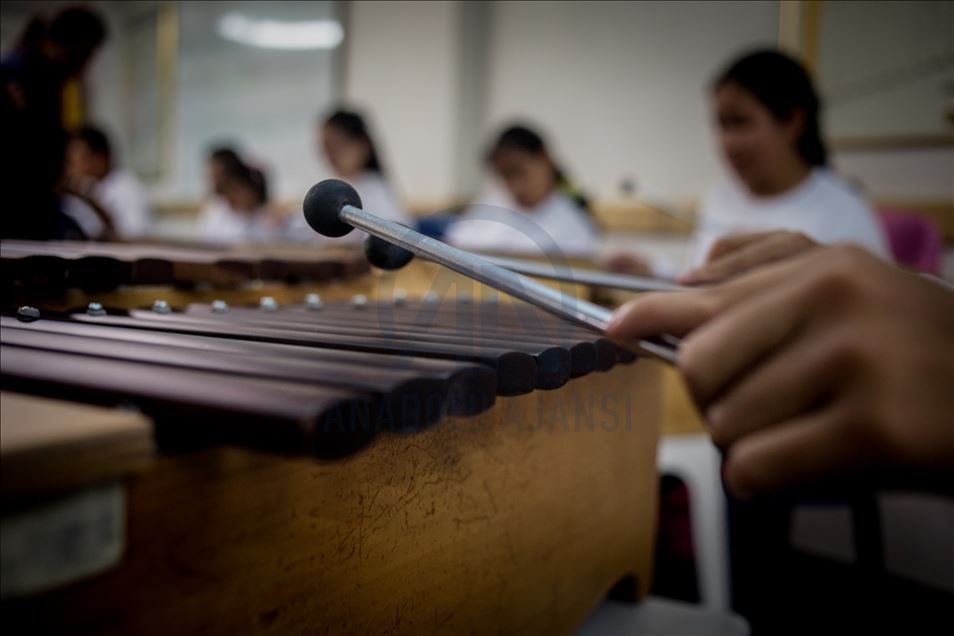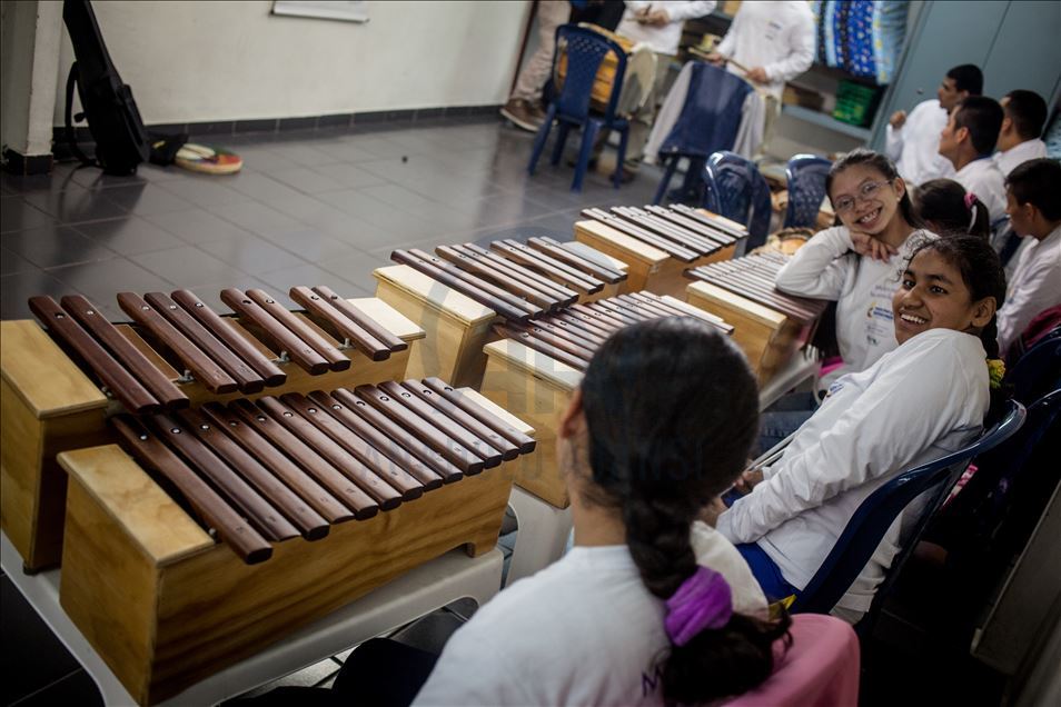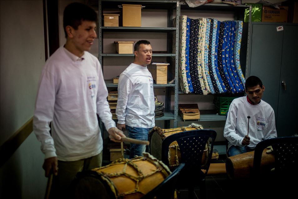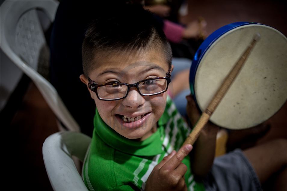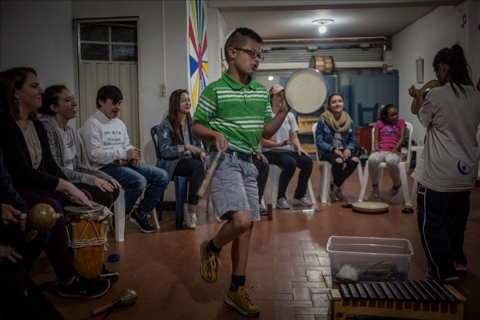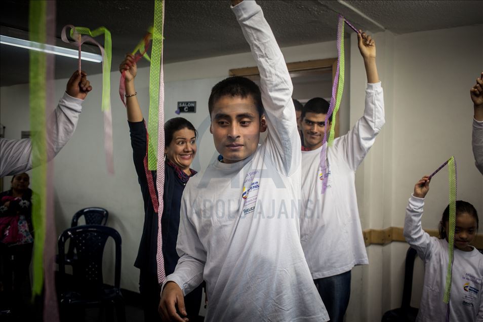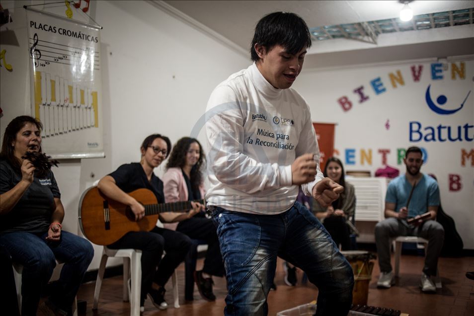 A group of kids with disabilities is seen during a class to motivate their senses through the dance and music at the Batuta foundation in Bogota, Colombia on January 16, 2020. Music tends to be one of the top motivators for children with special needs so they can use this to their advantage.