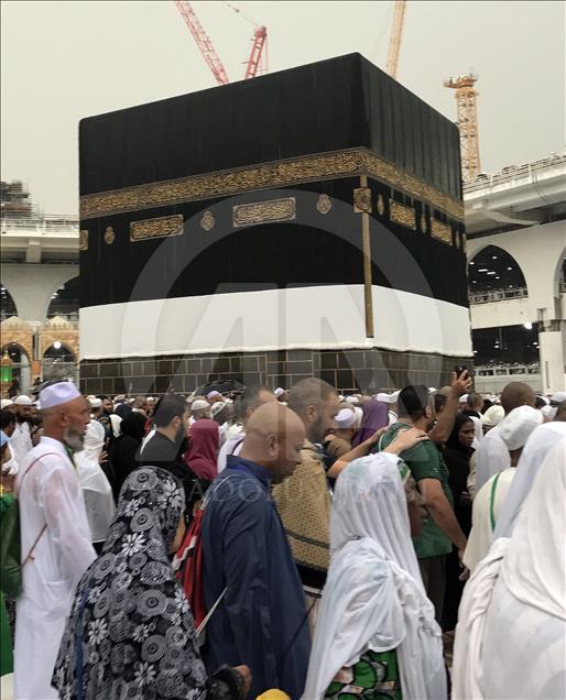 Muslim devotees circumambulated the Kaaba during rain and tried to collect water with their coifs and attires. Number of prospective pilgrims, those who arrived to Mecca, exceeded 1 million.