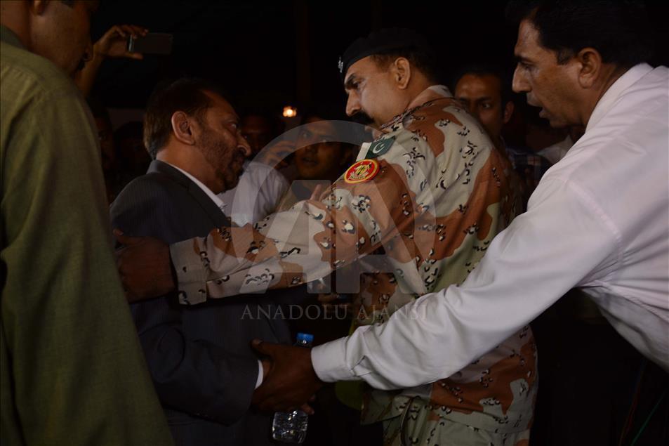 PAKISTAN, KARACHI-AUGUST 22: People carry an injured political worker belonging to Muttahida Qaumi Movement (MQM) during a protest against lack of coverage of the party’s ongoing sit-in at press club in Karachi, Pakistan on August 22, 2016.