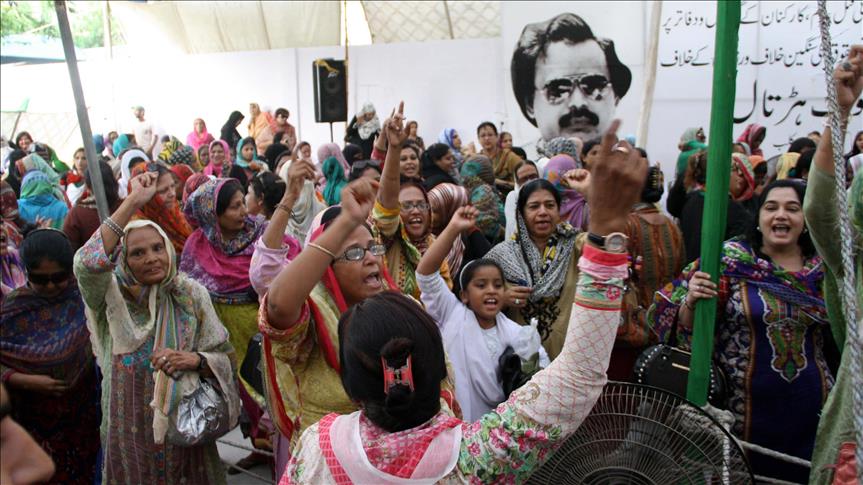 Muttahida Qaumi Movement members stage a protest in Karachi
