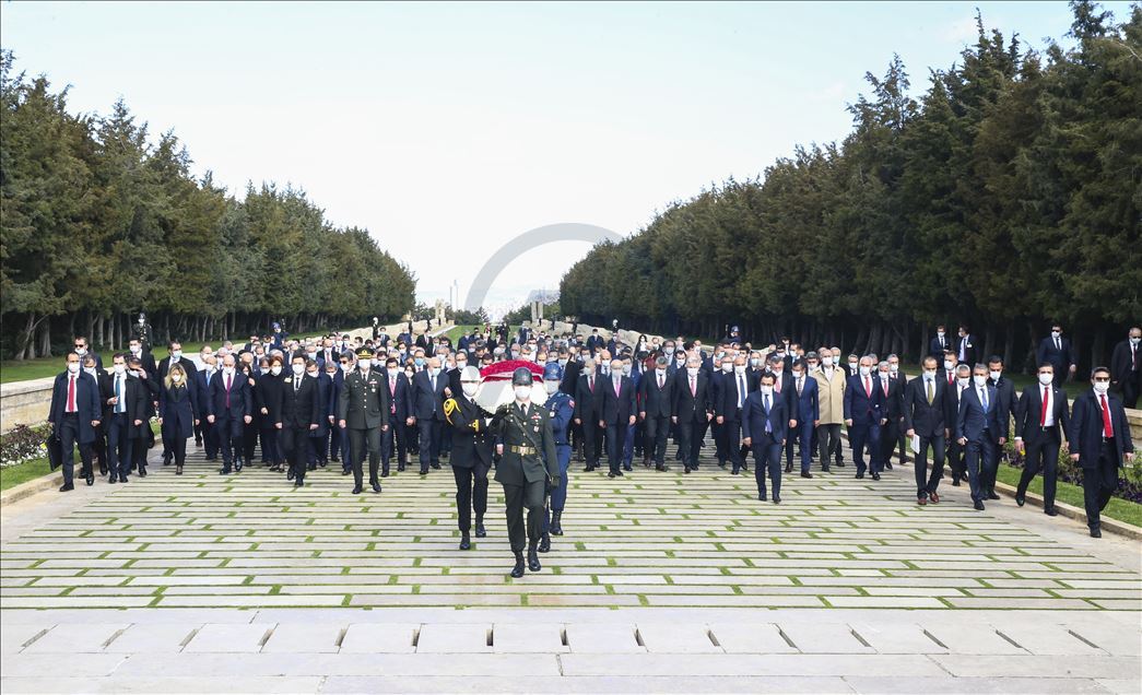 Top officials led by Turkish Parliament Speaker Mustafa Sentop (Front C) visit Anitkabir, the mausoleum of Mustafa Kemal Ataturk, the founder of the Turkish Republic, on the National Sovereignty and Children's Day in Ankara, Turkey on April 23, 2020