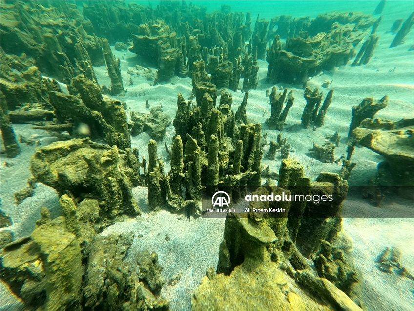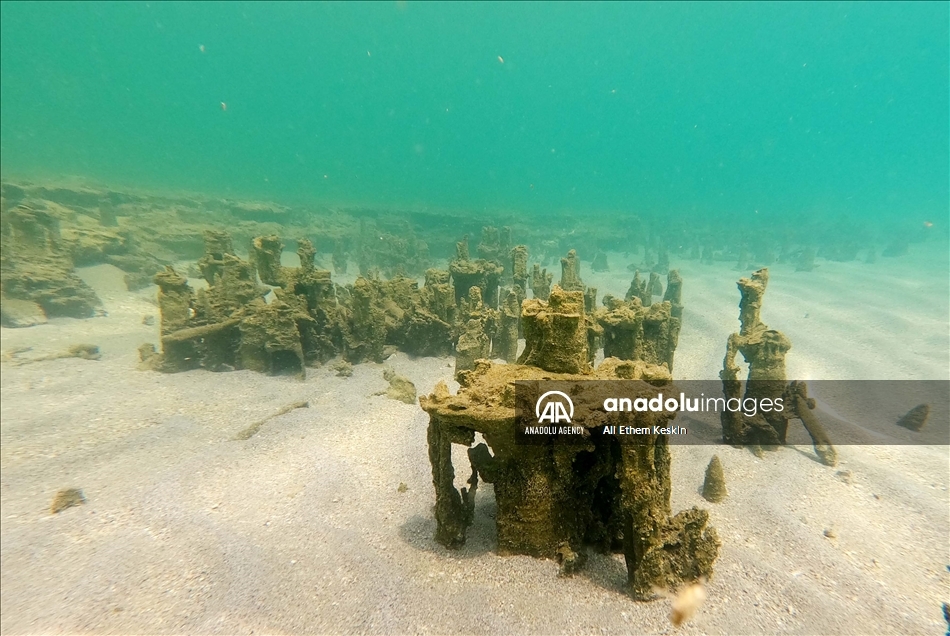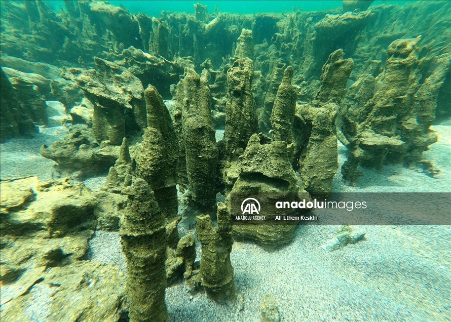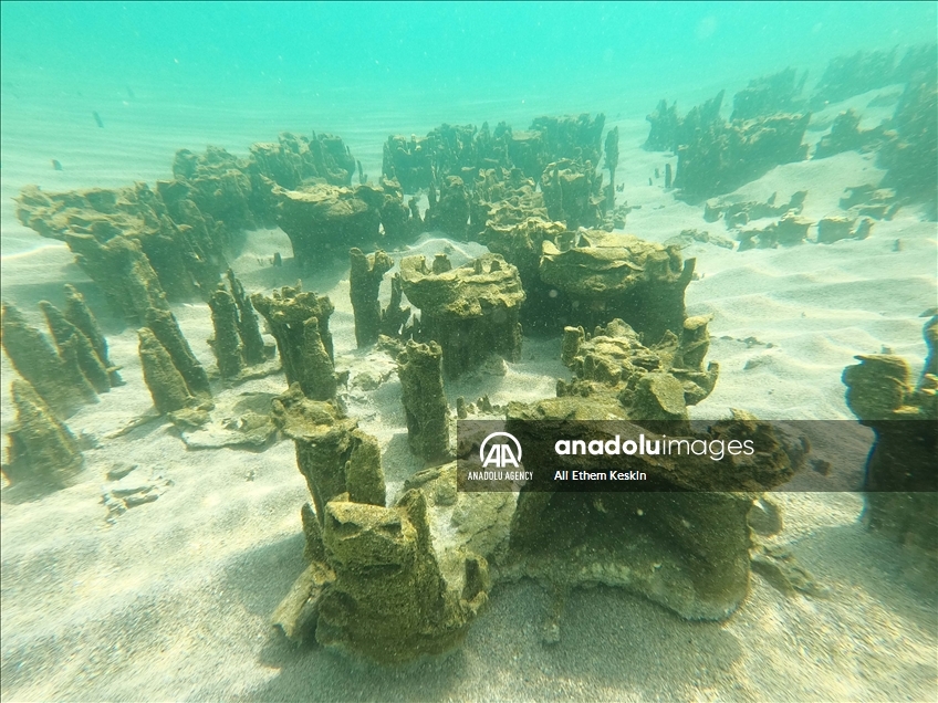 BITLIS, TURKEY - AUGUST 08: An underwater photo shows the new microbialites discovered at Lake Van in Adilcevaz district of Turkey's Bitlis province on August 08, 2021. ( Ali Ethem Keskin - Anadolu Agency )Ali Ethem Keskin