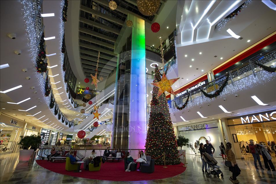 ANKARA, TURKEY - DECEMBER 9: Illuminated Christmas decorations are seen at a mall in Ankara, Turkey on December 9, 2019.