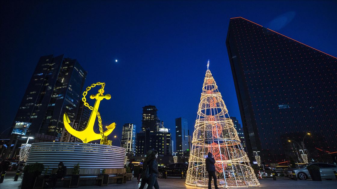 Illuminated Christmas decorations are seen at a mall in Ankara, Turkey on December 9, 2019.