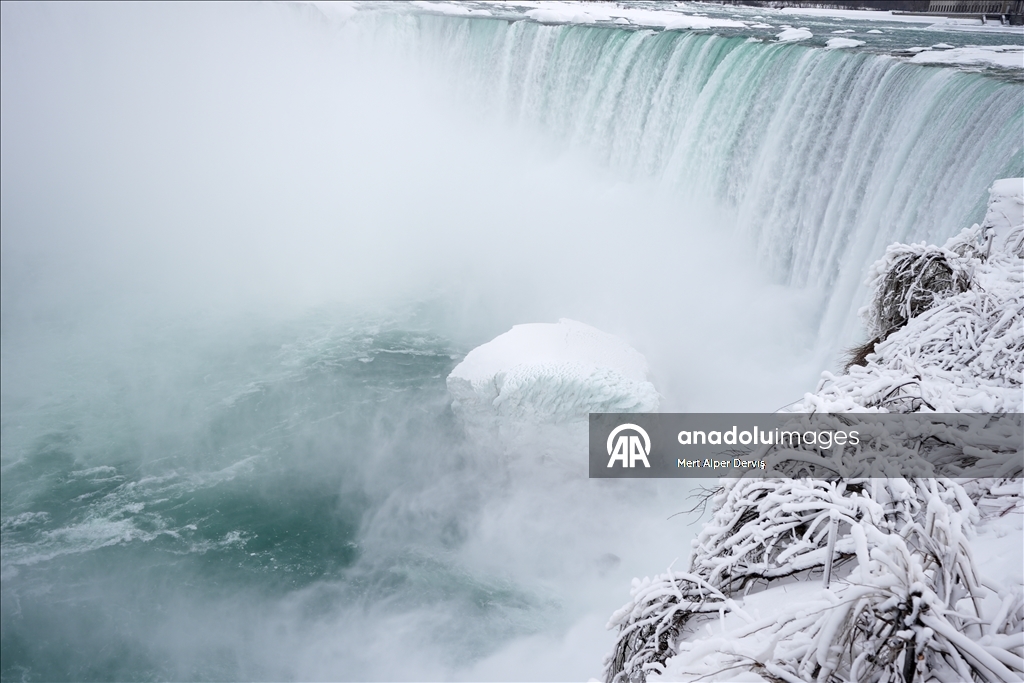 NIAGARA FALLS, CANADA - FEBRUARY 10 : Partially frozen Niagara Falls are seen amid below-freezing temperatures in Ontario, Canada on February 10, 2026. ( Mert Alper Dervış - Anadolu Agency )Mert Alper Dervış