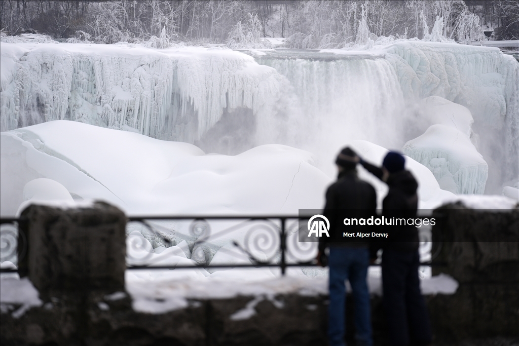 NIAGARA FALLS, CANADA - FEBRUARY 10 : Tourists visit Niagara Falls as the iconic waterfall partially freezes amid below-freezing temperatures in Ontario, Canada on February 10, 2026. ( Mert Alper Dervış - Anadolu Agency )Mert Alper Dervış