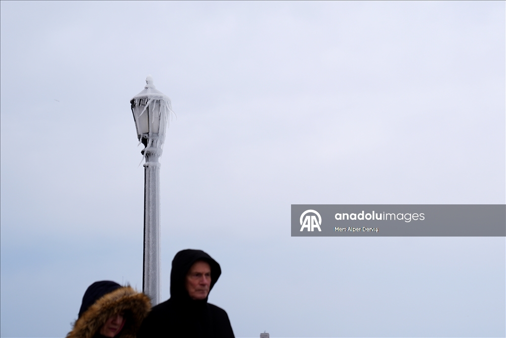 NIAGARA FALLS, CANADA - FEBRUARY 10 : Ice builds up on a lamp post as the Niagara Falls partially freezes amid below-freezing temperatures in Ontario, Canada on February 10, 2026. ( Mert Alper Dervış - Anadolu Agency )Mert Alper Dervış