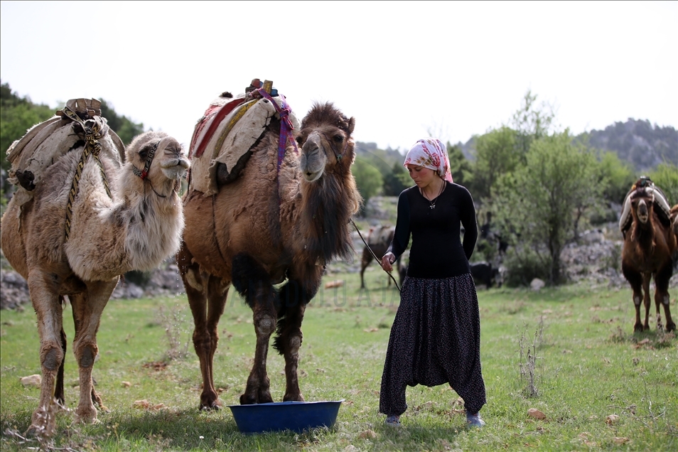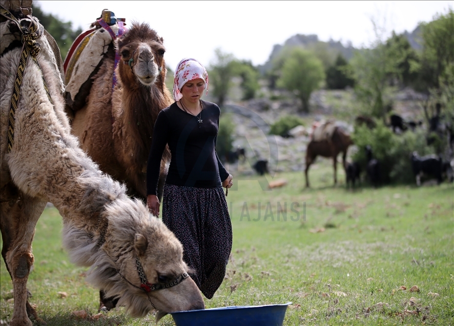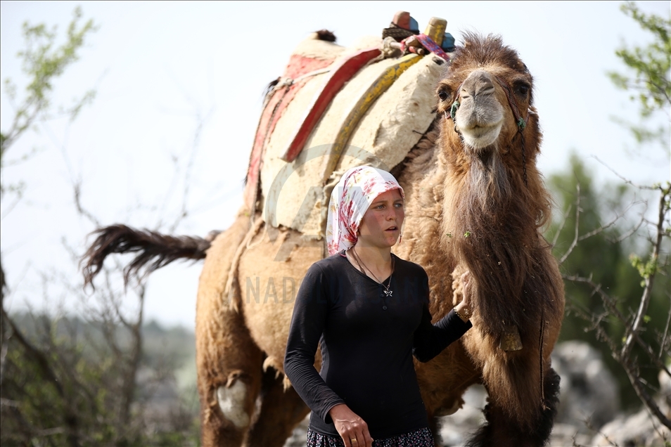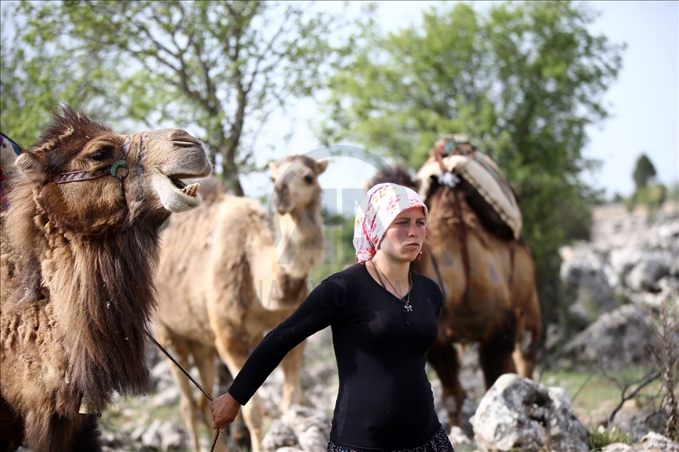 MERSIN, TURKEY - MAY 04: Nomad Fatma Dilekmen, 23, is seen with her cave flock as she and nomads are on their way to cooler uplands to Konya and Karaman districts at spring season in Mersin, Turkey on May 04, 2021. ( Sezgin Pancar - Anadolu Agency )Sezgin Pancar