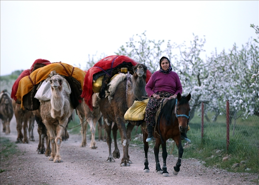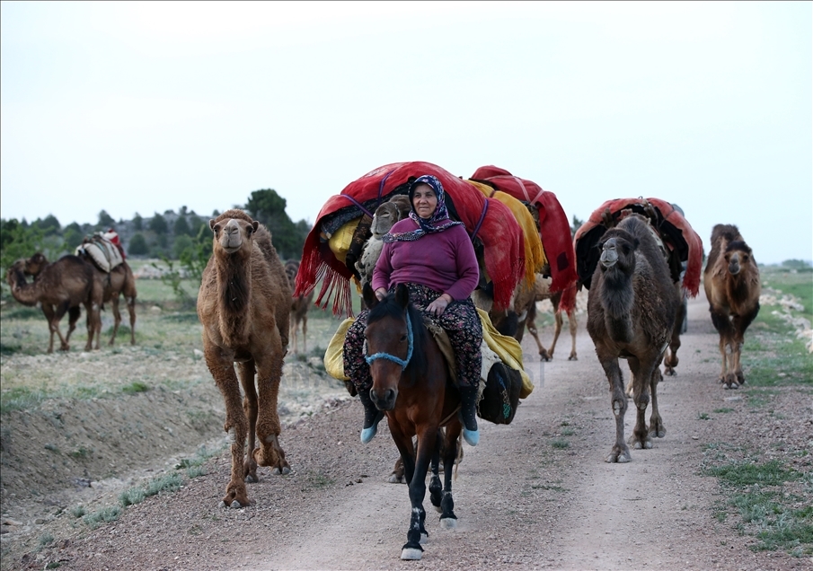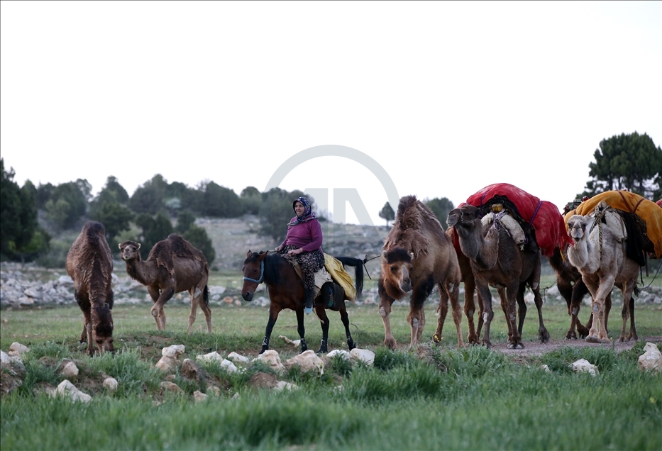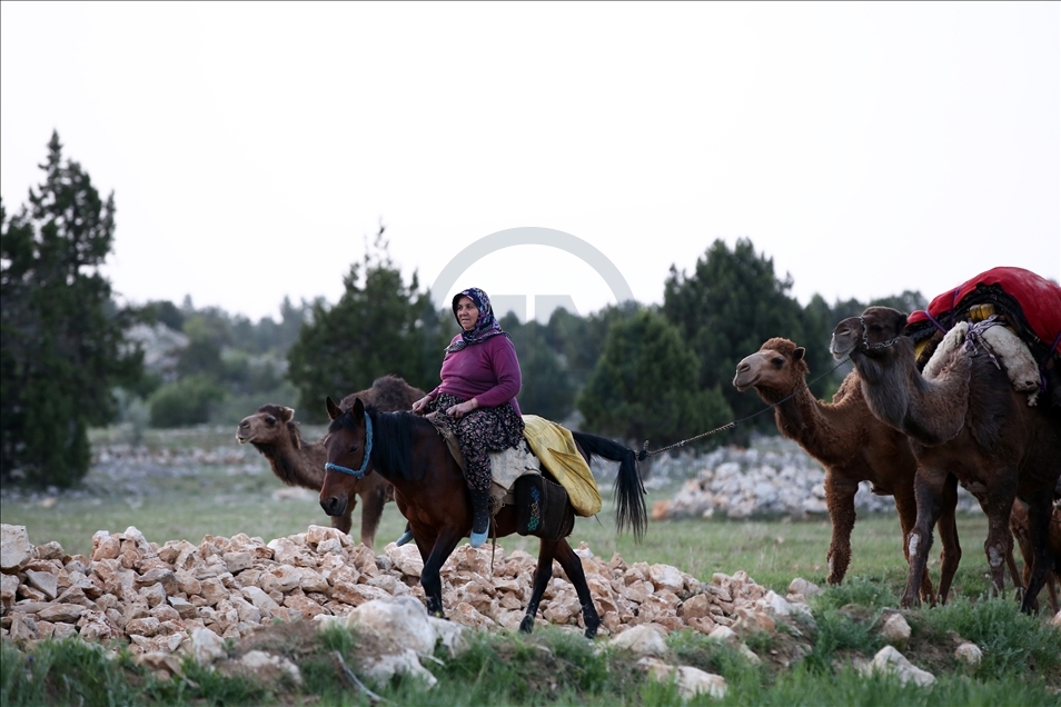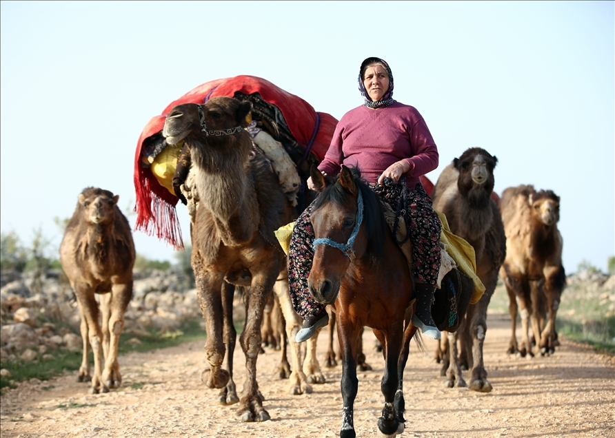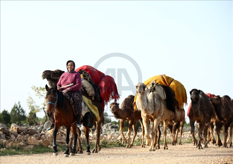MERSIN, TURKEY - MAY 04: Nomad Hatice Ucar, 61, riding a horse, is seen with her cave flock as she and nomads are on their way to cooler uplands to Konya and Karaman districts at spring season in Mersin, Turkey on May 04, 2021. ( Sezgin Pancar - Anadolu Agency )Sezgin Pancar