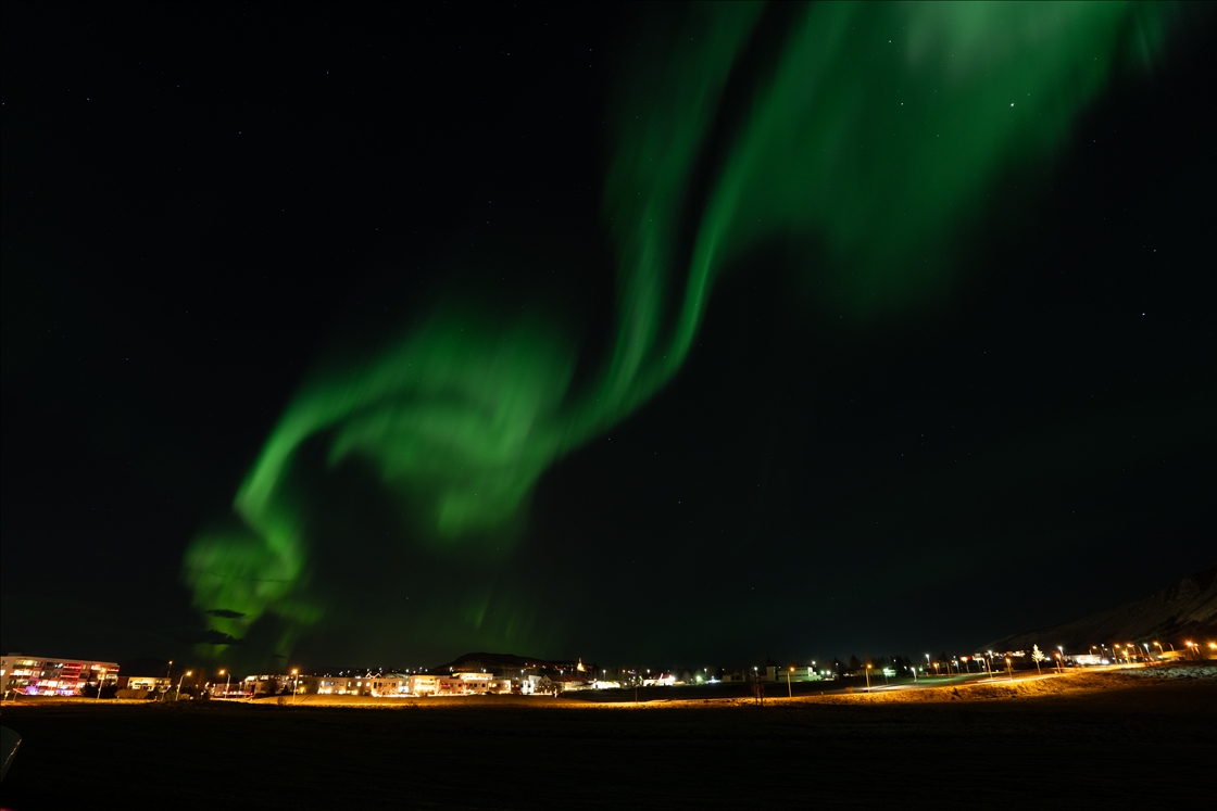 Northern lights illuminate Reykjavik during powerful geomagnetic storm