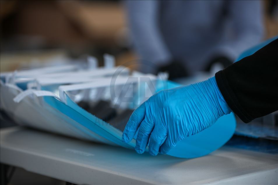 NEW YORK, USA - MARCH 26: A person works during the visit of New York City Mayor Bill de Blasio at the Brooklyn Navy Yard in New York, United States on March 26, 2020. Local industrial firms have started manufacturing Personal Protective Equipment (PPE) like face shields to supply the city’s healthcare workers and hospitals. ( Tayfun Coşkun - Anadolu Agency )Tayfun Coşkun