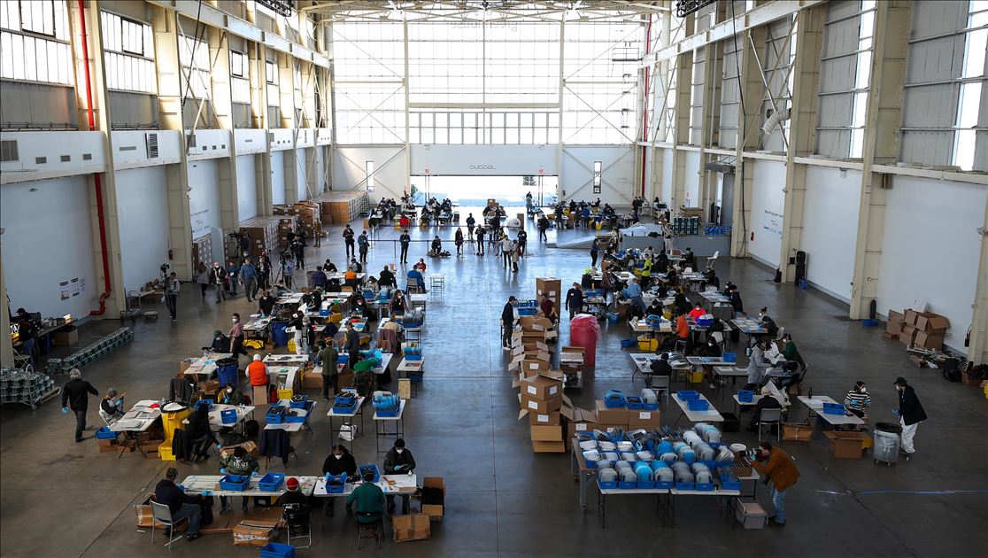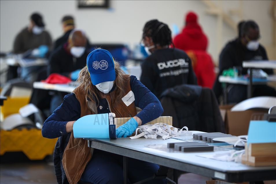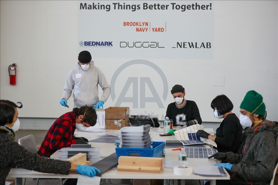 NEW YORK, USA - MARCH 26: People work during the visit of New York City Mayor Bill de Blasio at the Brooklyn Navy Yard in New York, United States on March 26, 2020. Local industrial firms have started manufacturing Personal Protective Equipment (PPE) like face shields to supply the city’s healthcare workers and hospitals. ( Tayfun Coşkun - Anadolu Agency )Tayfun Coşkun