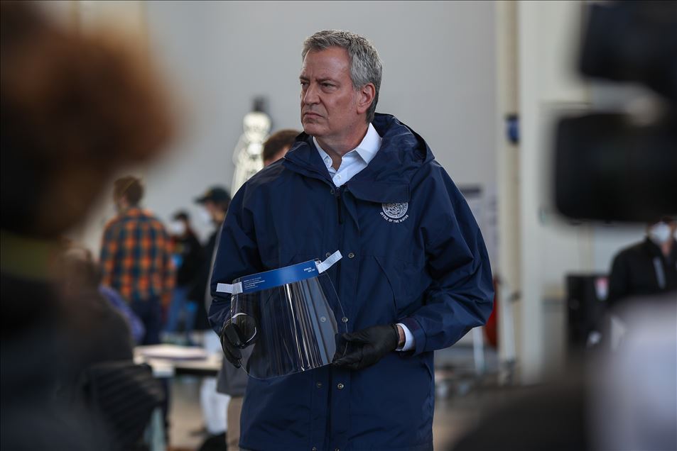 NEW YORK, USA - MARCH 26: New York City Mayor Bill de Blasio visits the Brooklyn Navy Yard in New York, United States on March 26, 2020. Local industrial firms have started manufacturing Personal Protective Equipment (PPE) like face shields to supply the city’s healthcare workers and hospitals. ( Tayfun Coşkun - Anadolu Agency )Tayfun Coşkun