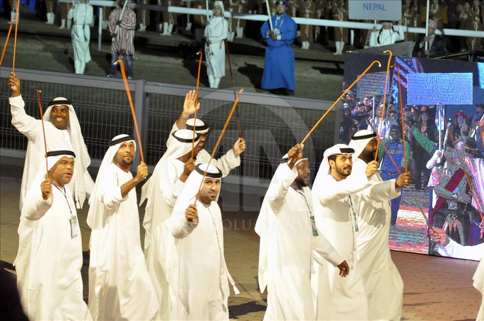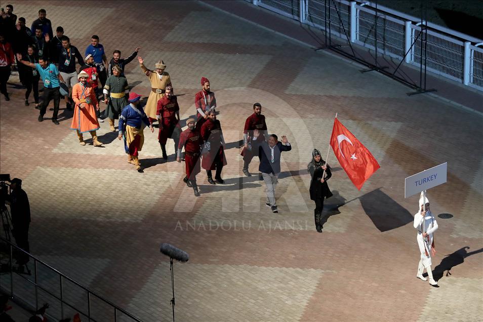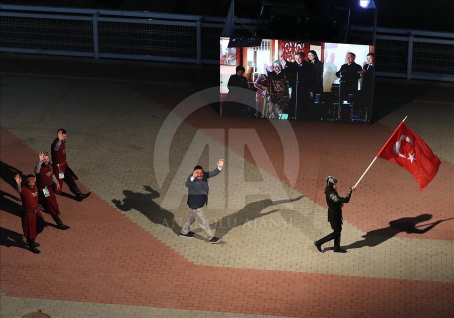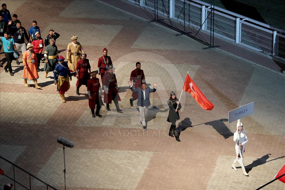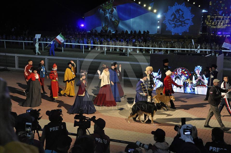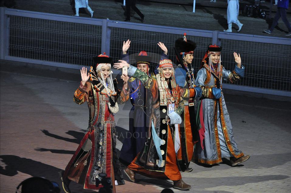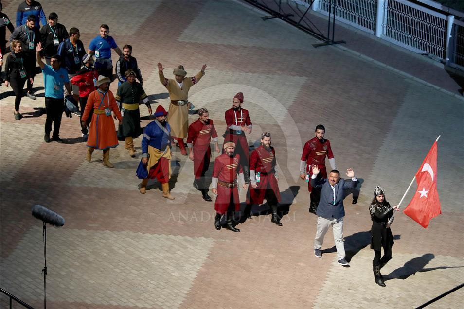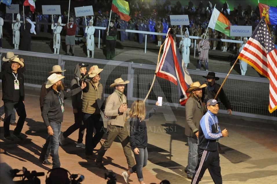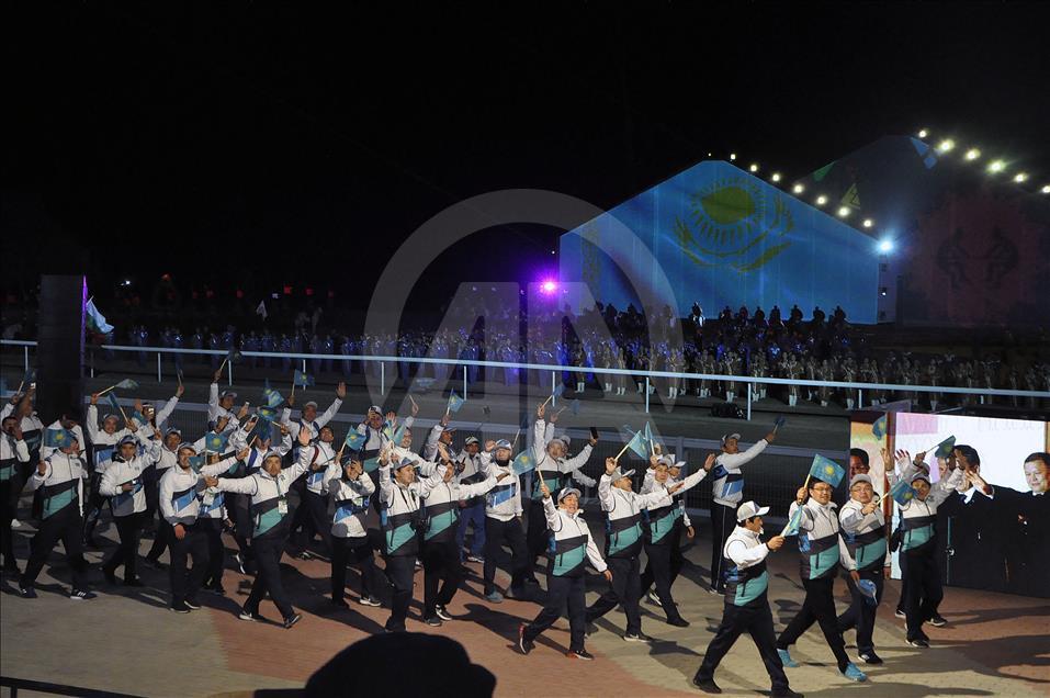 BISHKEK, KYRGYZSTAN - SEPTEMBER 02: Athletes of participant countries attend the opening ceremony of the 3rd World Nomad Games at Issyk-Kul in Cholpon-Ata 240 kilometers east of Bishkek, Kyrgyzstan on September 02, 2018. ( Nezir Aliyev - Anadolu Agency )Nezir Aliyev