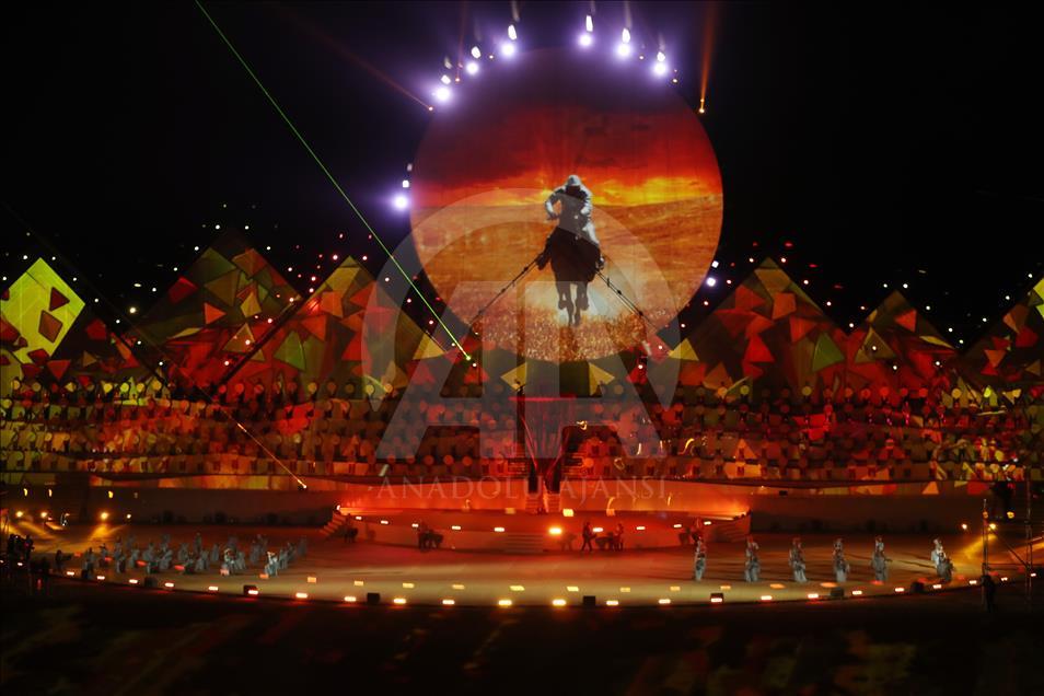 BISHKEK, KYRGYZSTAN - SEPTEMBER 02: Opening ceremony is held for 3rd World Nomad Games at Issyk-Kul in Cholpon-Ata 240 kilometers east of Bishkek, Kyrgyzstan on September 02, 2018. ( Cem Öksüz - Anadolu Agency )Cem Öksüz