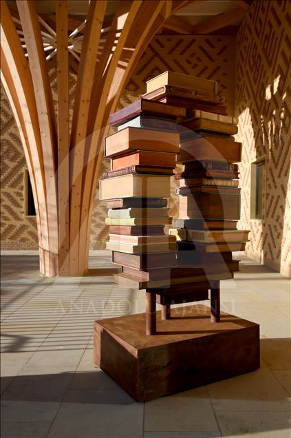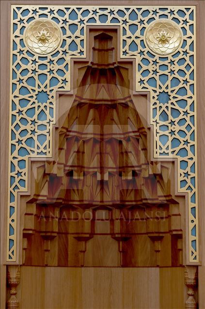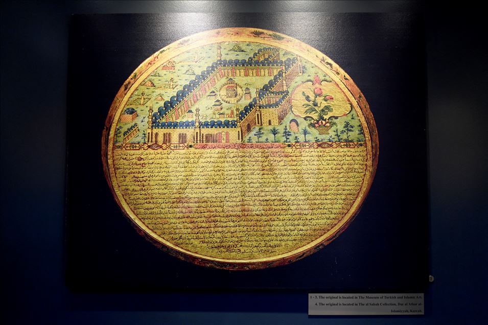 CAMBRIDGE, ENGLAND - NOVEMBER 30: A work from an exhibition on Islamic civilization between 9th and 16th centuries is on display inside the Cambridge Mosque in Cambridge, England on November 30, 2019. In addition to its award-winning architecture, which adheres to Islamic traditions, the mosque attracts attention with its environmentally friendly systems that store rainwater and the building provides some of its electricity from solar energy. The mosque, which uses natural materials such as wood and marble, also attracts attention with having zero carbon footprint.