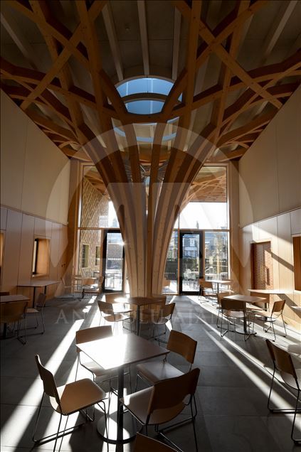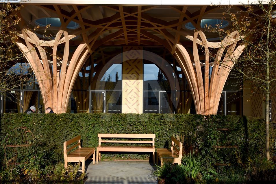 CAMBRIDGE, ENGLAND - NOVEMBER 30: A view of the Cambridge Mosque in Cambridge, England on November 30, 2019. In addition to its award-winning architecture, which adheres to Islamic traditions, the mosque attracts attention with its environmentally friendly systems that store rainwater and the building provides some of its electricity from solar energy. The mosque, which uses natural materials such as wood and marble, also attracts attention with having zero carbon footprint.