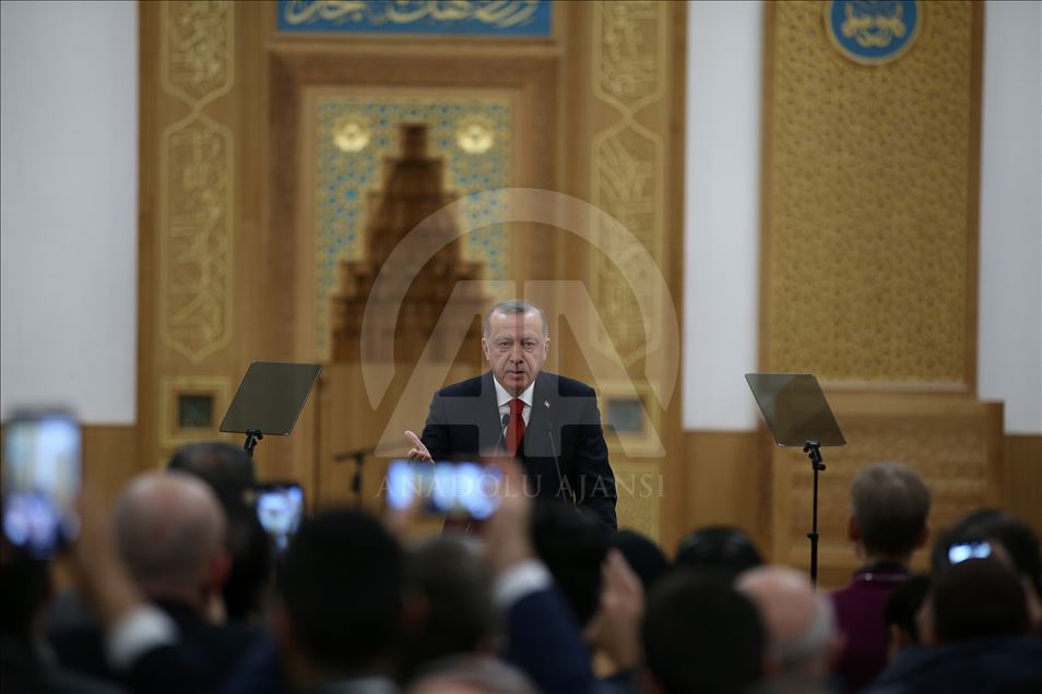 LONDON, ENGLAND - DECEMBER 5: Turkish President Recep Tayyip Erdogan makes a speech as he attends official opening ceremony of Cambridge Central Mosque in London, United Kingdom on December 5, 2019. ( Mehmet Ali Özcan - Anadolu Agency )Mehmet Ali Özcan