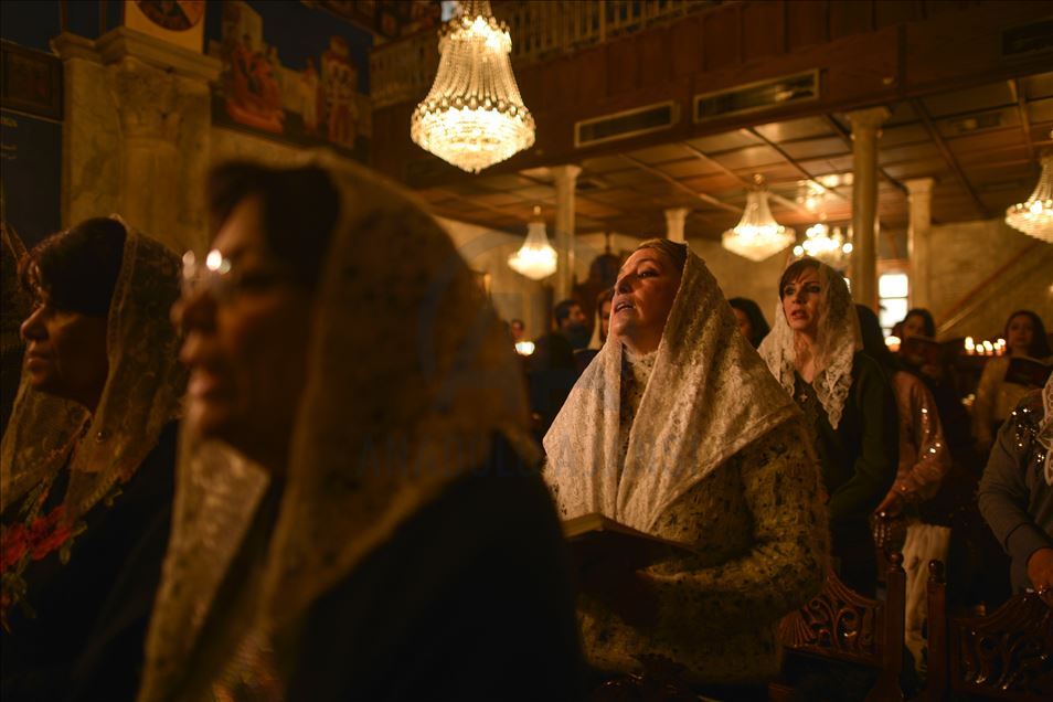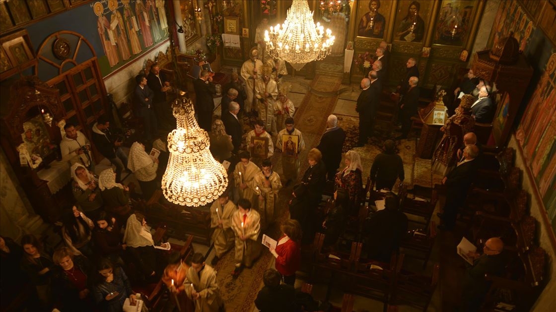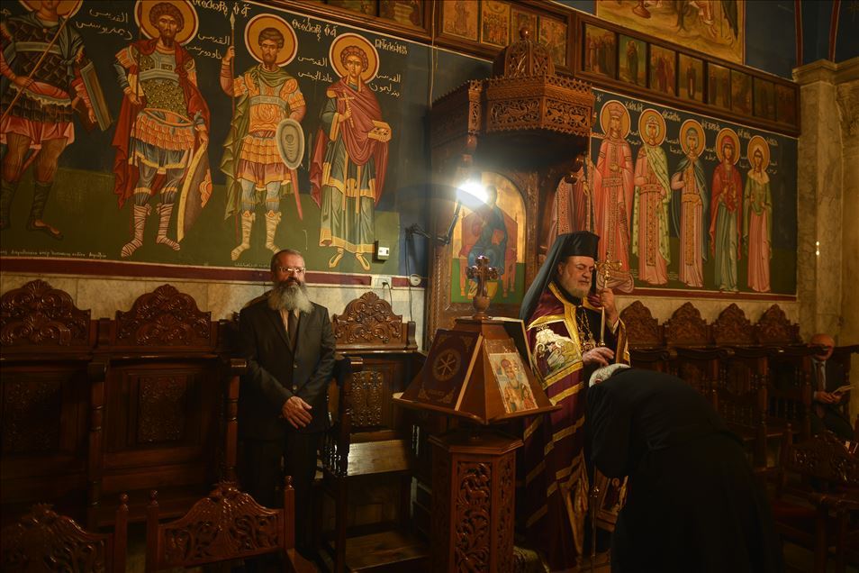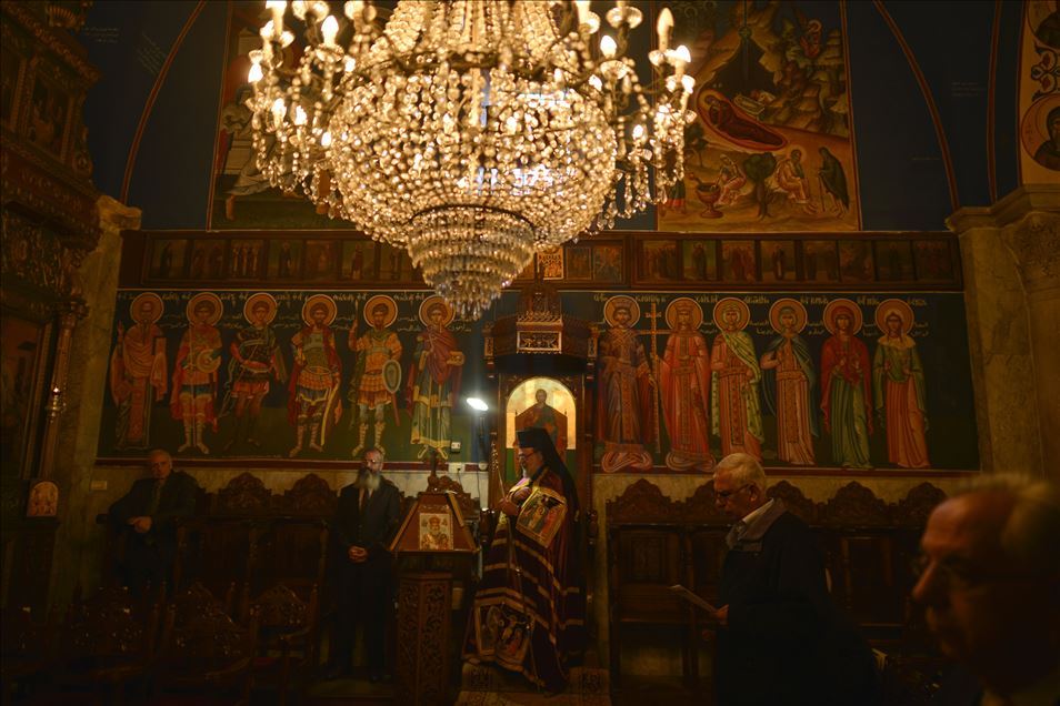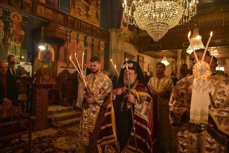 GAZA CITY, GAZA - JANUARY 7 : Orthodox Christmas service, officiated by Archbishop Alexios, held in Saint Porphyrius Orthodox Church in Gaza City, Gaza on January 7, 2020.