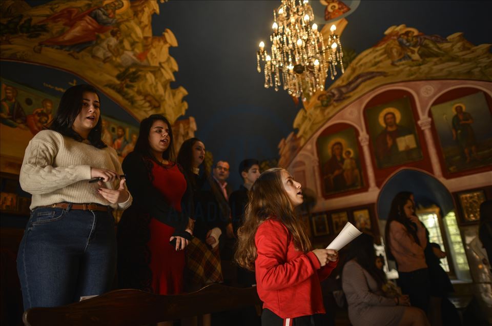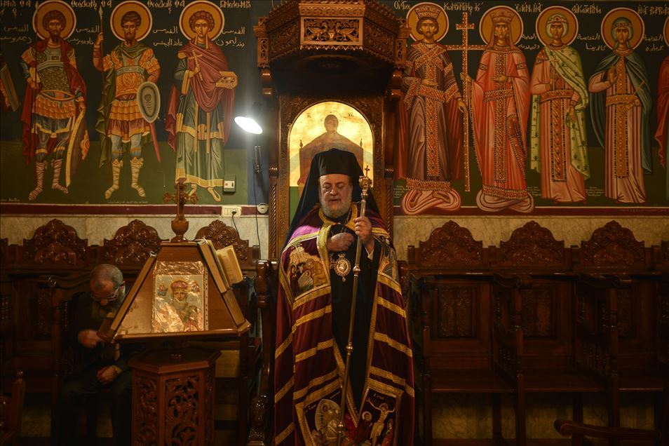 Orthodox Christmas service, officiated by Archbishop Alexios, held in Saint Porphyrius Orthodox Church in Gaza City, Gaza on January 7, 2020.