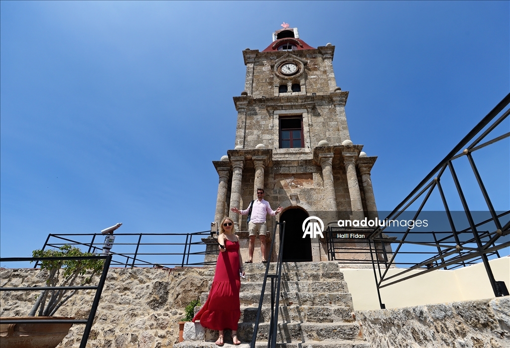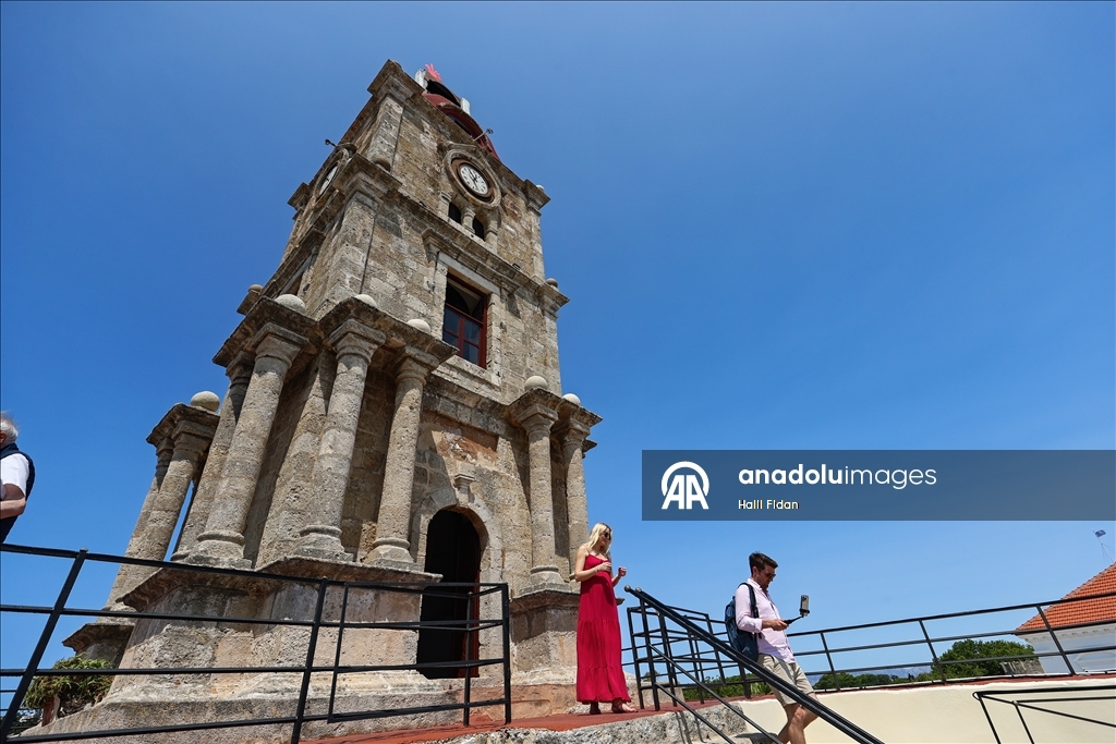 RHODES, GREECE - MAY 23: A view of Medieval Clock Tower, which is one of the Ottoman artifacts and was built in 1852 during the reign of Sultan Abdulmecid I, in Rhodes, one of the largest islands in the Aegean Sea, as it continues to attract the attention of history buffs with its Ottoman-era buildings in Greece on May 23, 2025. ( Halil Fidan - Anadolu Agency )Halil Fidan