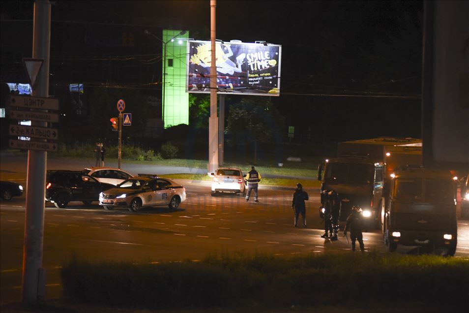 MINSK, BELARUS - AUGUST 11: Security forces take measures at streets to restrain the moving across of protestors to the areas during the ongoing unauthorized demonstrations in the capital Minsk, Belarus on August 11, 2020. More than 3,000 people have been arrested in Belarus as protests continued after incumbent Alexander Lukashenko was declared the winner of Sunday’s presidential election.