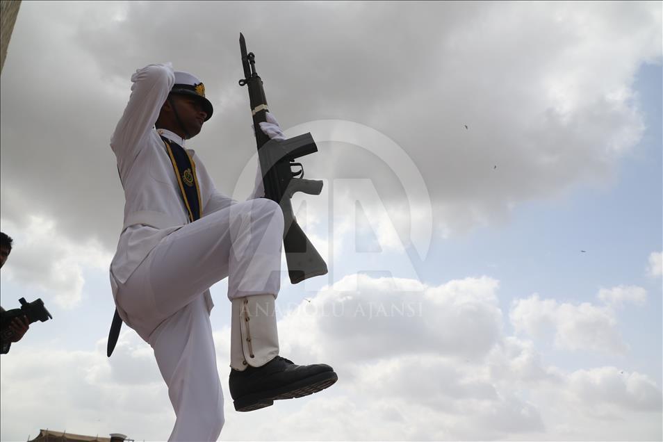 KARACHI, PAKISTAN - AUGUST 14: Pakistani naval cadets march into the mausoleum of founding father, Quaid-e-Azam Mohammad Ali Jinnah during Independence Day celebrations in Karachi, Pakistan on 14, 2017.Sabir Mazhar