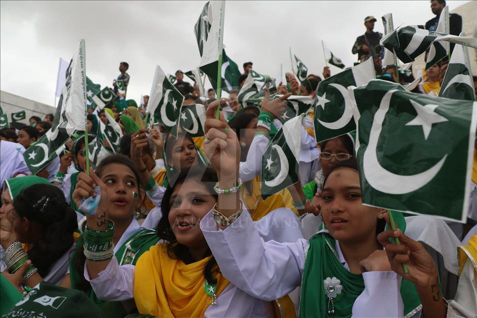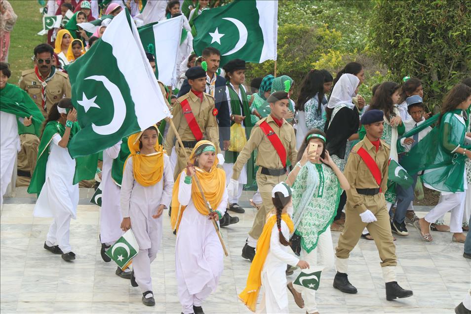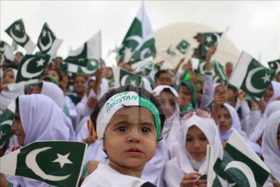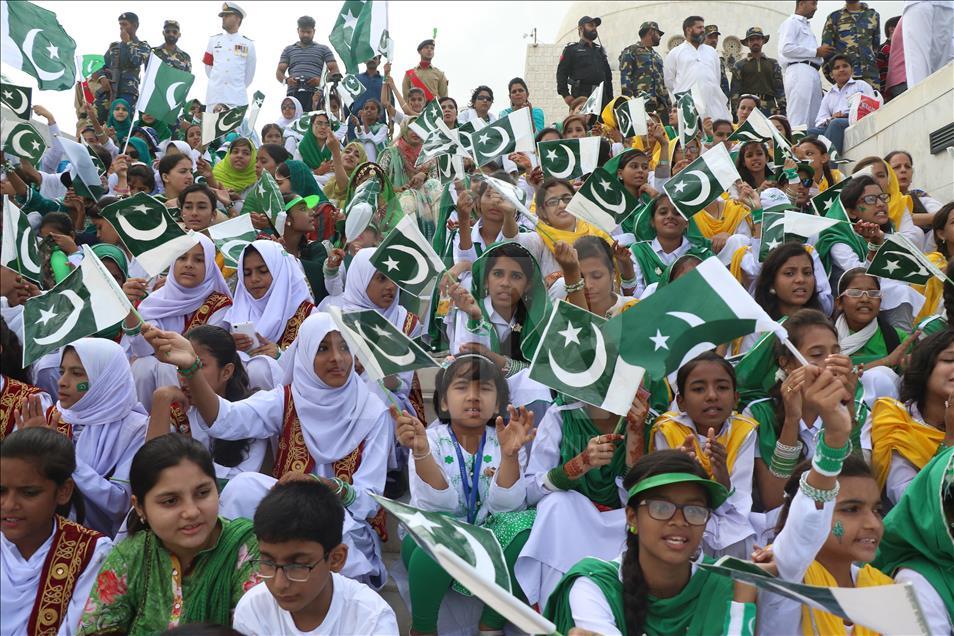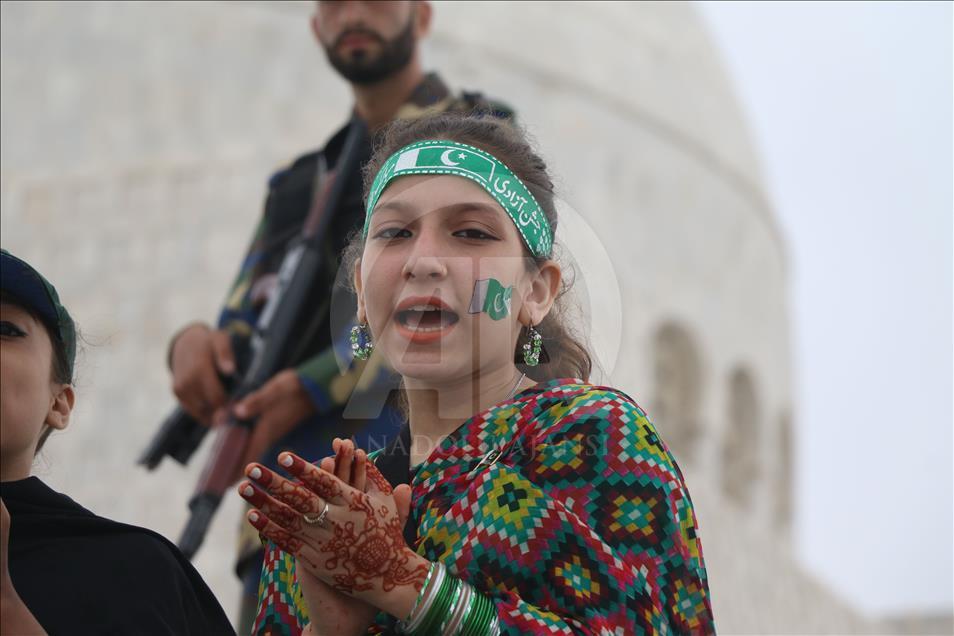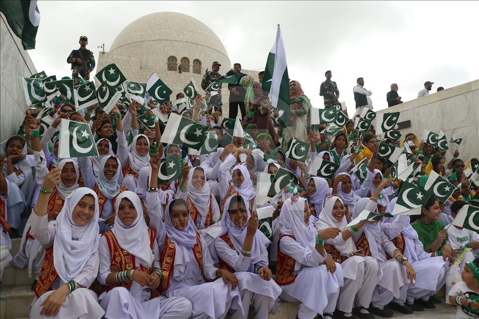Pakistani people celebrate Independence Day at the mausoleum of the founder of Pakistan Muhammad Ali Jinnah in Karachi, Pakistan.