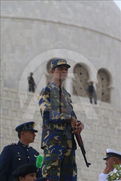 KARACHI, PAKISTAN - AUGUST 14: Pakistani soldiers stand alert at the mausoleum of the founder of Pakistan Muhammad, Ali Jinnah during a ceremony to mark the countrys Independence Day in Karachi, Pakistan on August 14, 2017. Sabir Mazhar