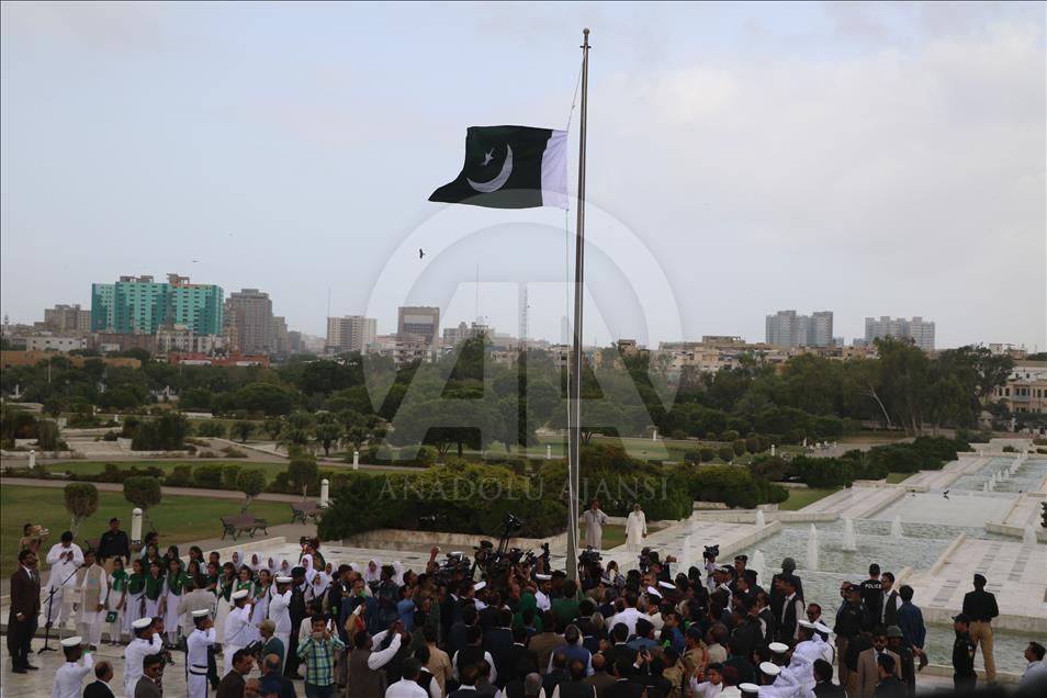 KARACHI, PAKISTAN - AUGUST 14: Pakistani officials attend a flag-hoisting ceremony marking Pakistan's 70th Independence Day at the founder of Pakistan Muhammad Ali Jinnah's mausoleum in Karachi, Pakistan on August 14, 2017. Sabir Mazhar