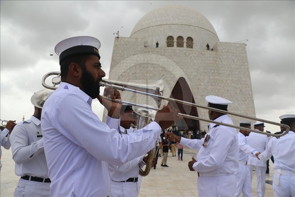 KARACHI, PAKISTAN - AUGUST 14: Pakistani Naval band perform at the mausoleum of the founder of Pakistan Muhammad Ali Jinnah during a ceremony to mark the countrys Independence Day in Karachi, Pakistan on August 14, 2017. Sabir Mazhar