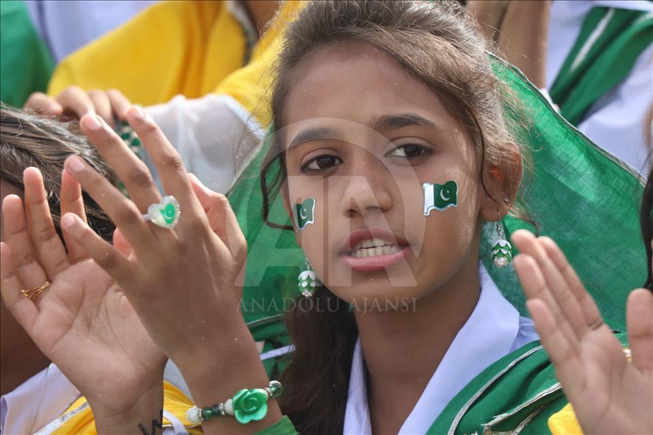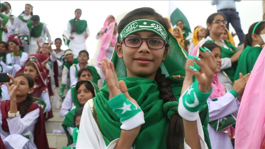 KARACHI, PAKISTAN - AUGUST 14: A Pakistani girl claps her hands at the mausoleum of the founder of Pakistan Muhammad Ali Jinnah during a ceremony to mark the country’s Independence Day in Karachi, Pakistan on August 14, 2017. Sabir Mazhar