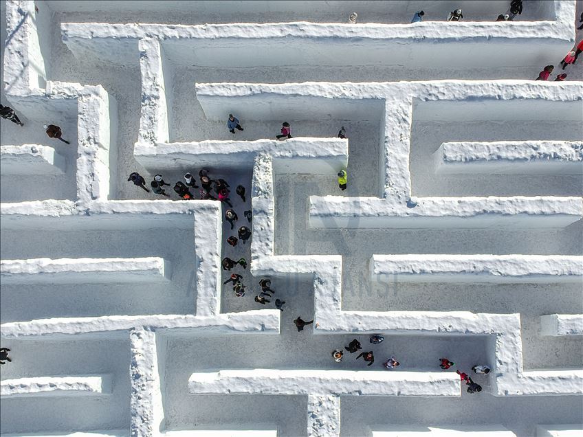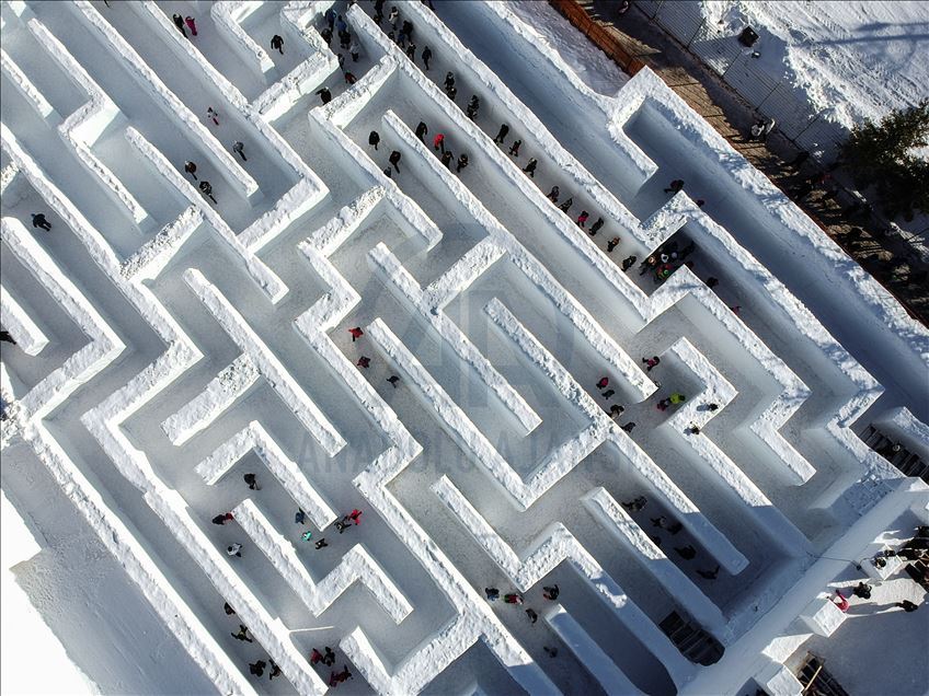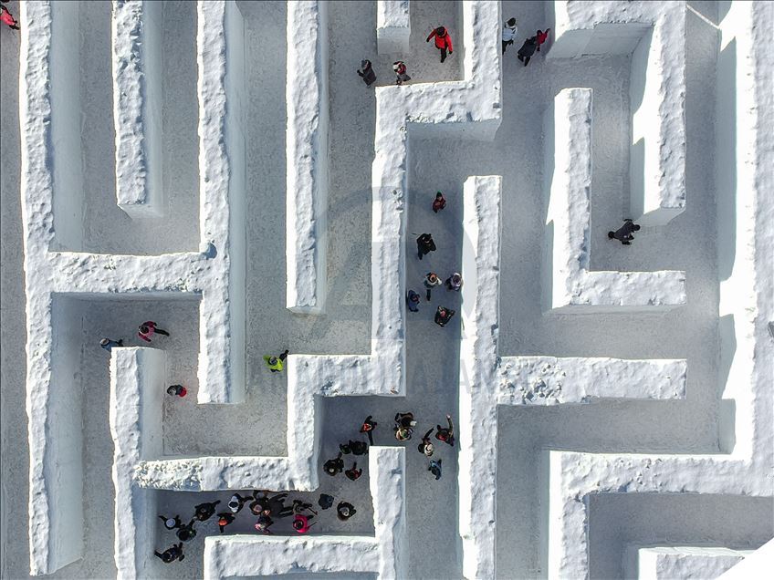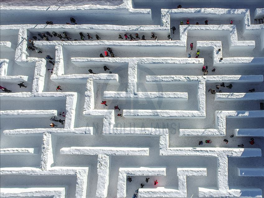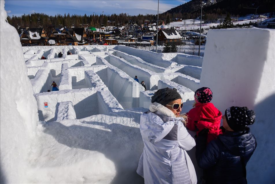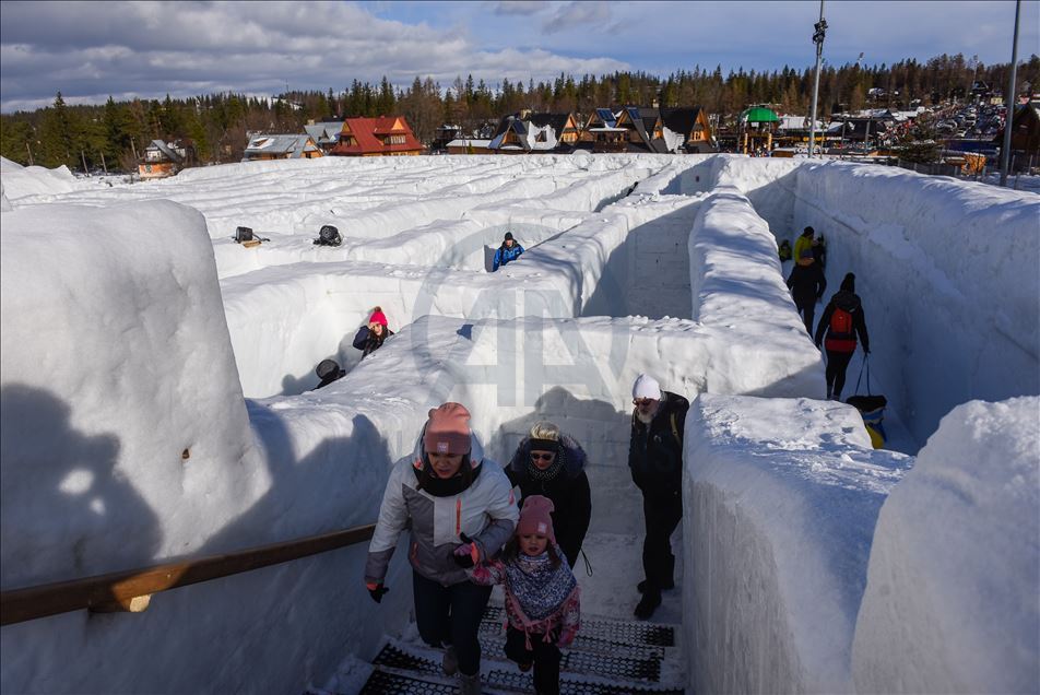 Visitors are seen as they found their way trough the biggest snow maze of the world in in Zakopane, Poland on January 29, 2020. The snow maze idea was created for the first time in the winter season of 2015/2016